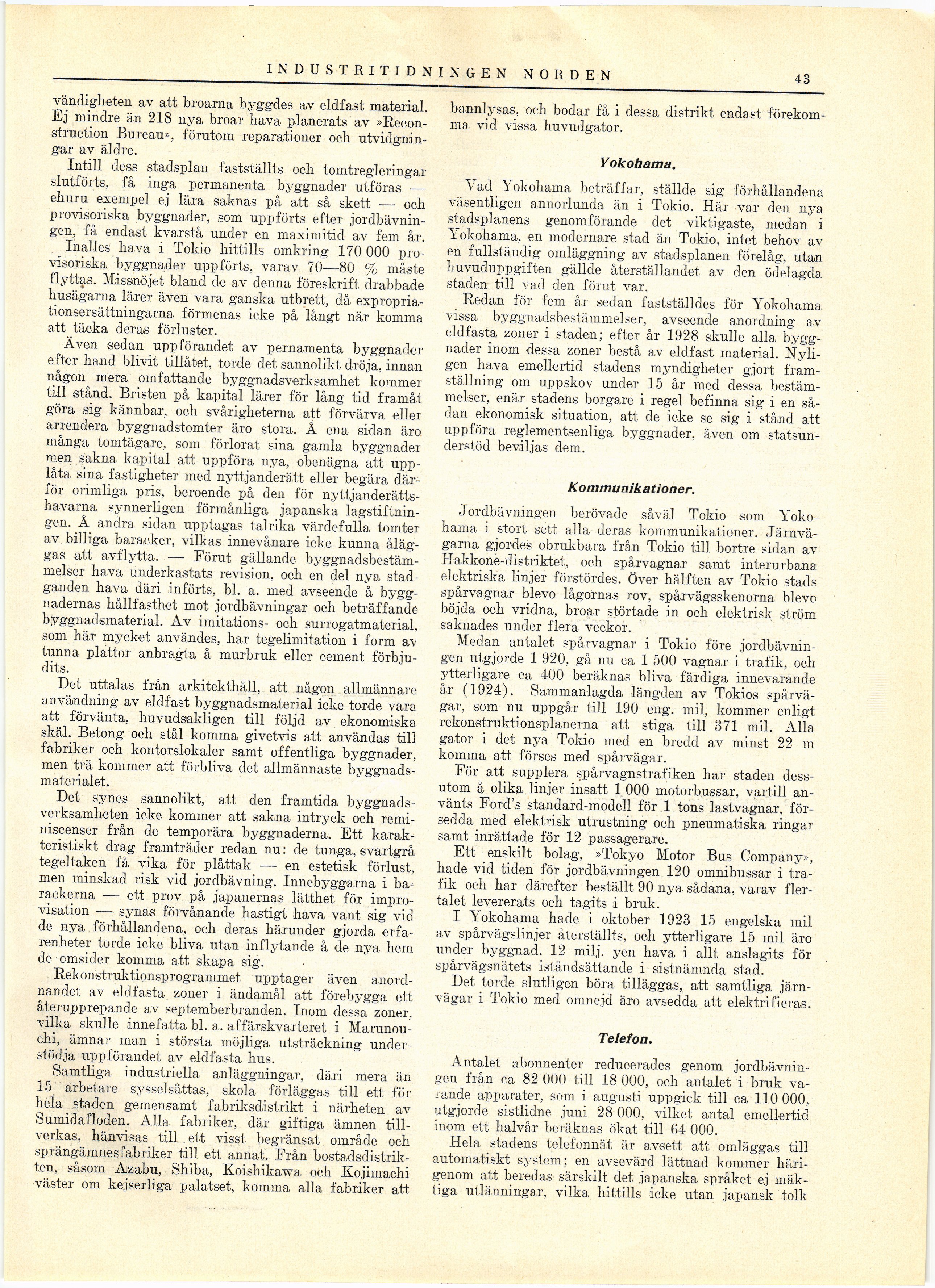 elektriska linjer förstördes. Över hälften av Tokio stads