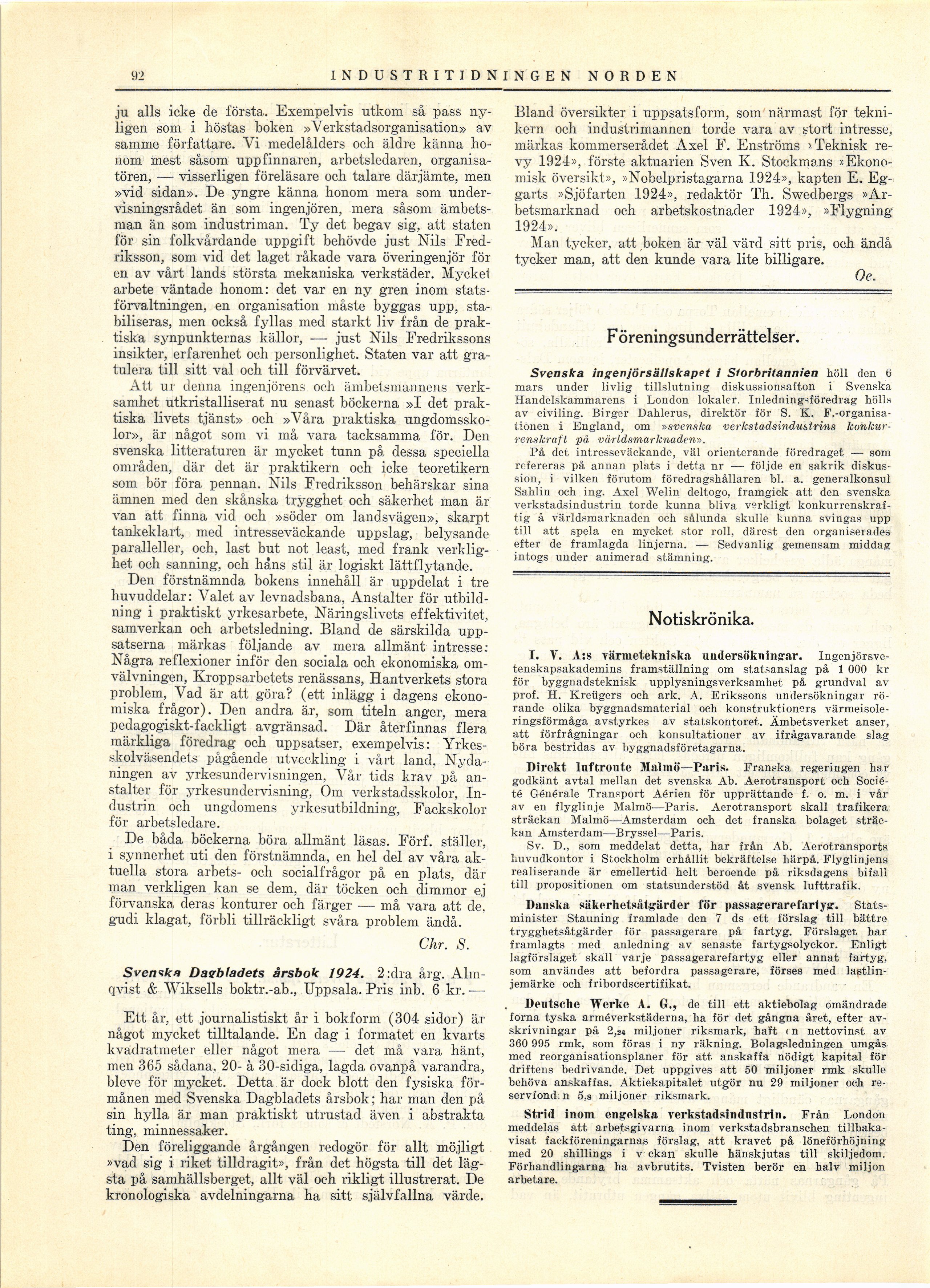 »Ekonomisk översikt», »Nobelpristagarna 1924», kapten E.