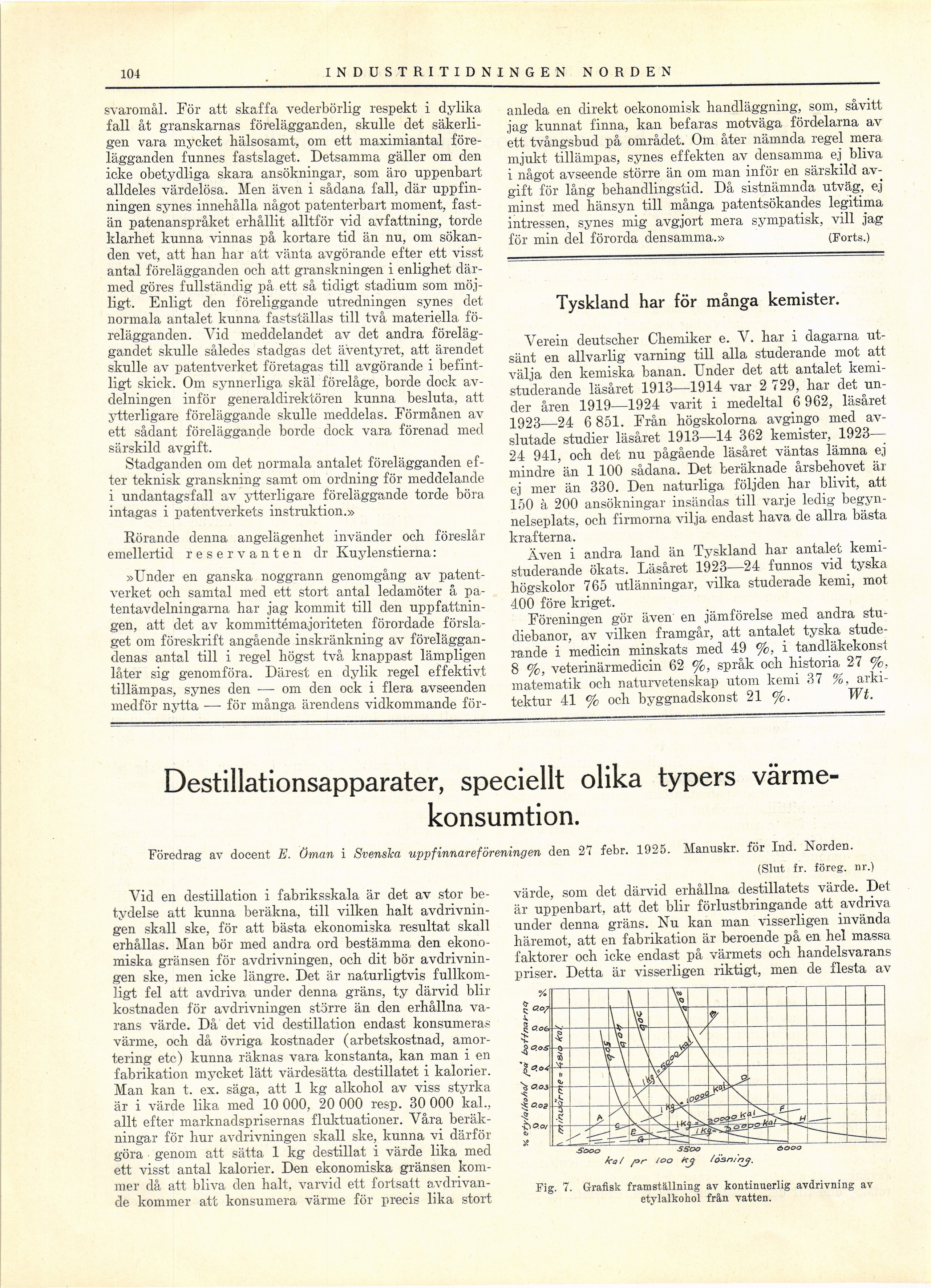 Föredrag av docent E. Öman i Svenska uppfinnareföreningen den 27 febr. 1925. Manuskr. för Ind. Norden.