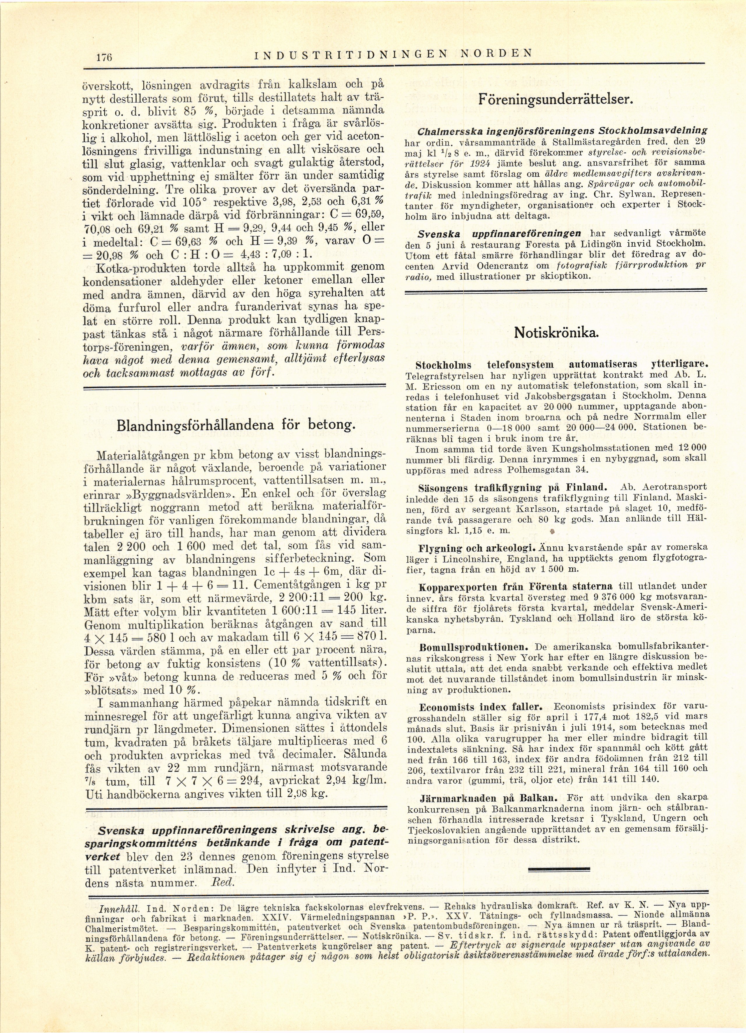 Blandningsförhållandena för betong. — Föreningsunderrättelser.— Notiskrönika. — Sv. tidskr. f. ind. rättsskydd: Patent offentliggjorda av