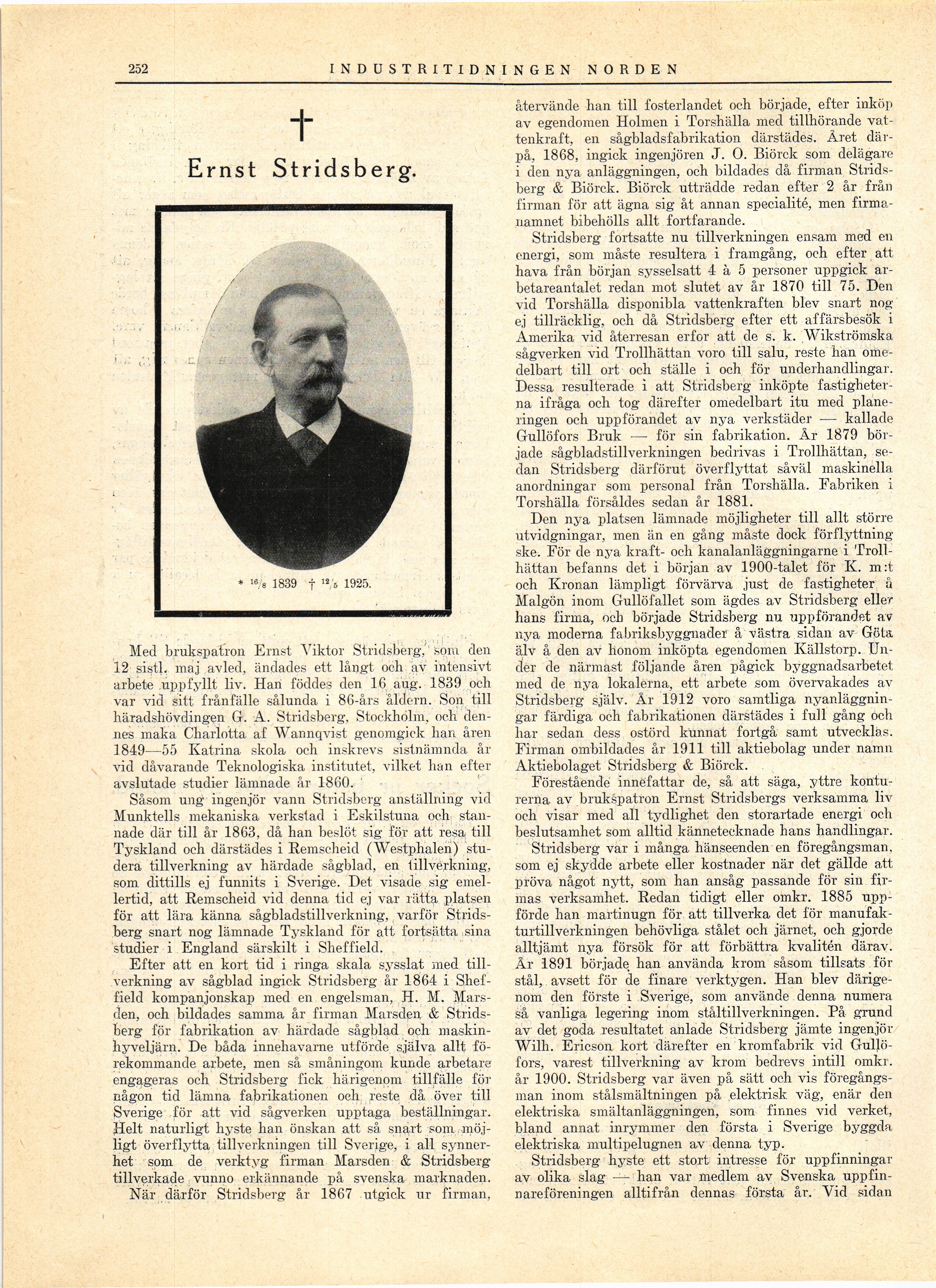 tillverkning av sågblad ingick Stridsberg år 1864 i