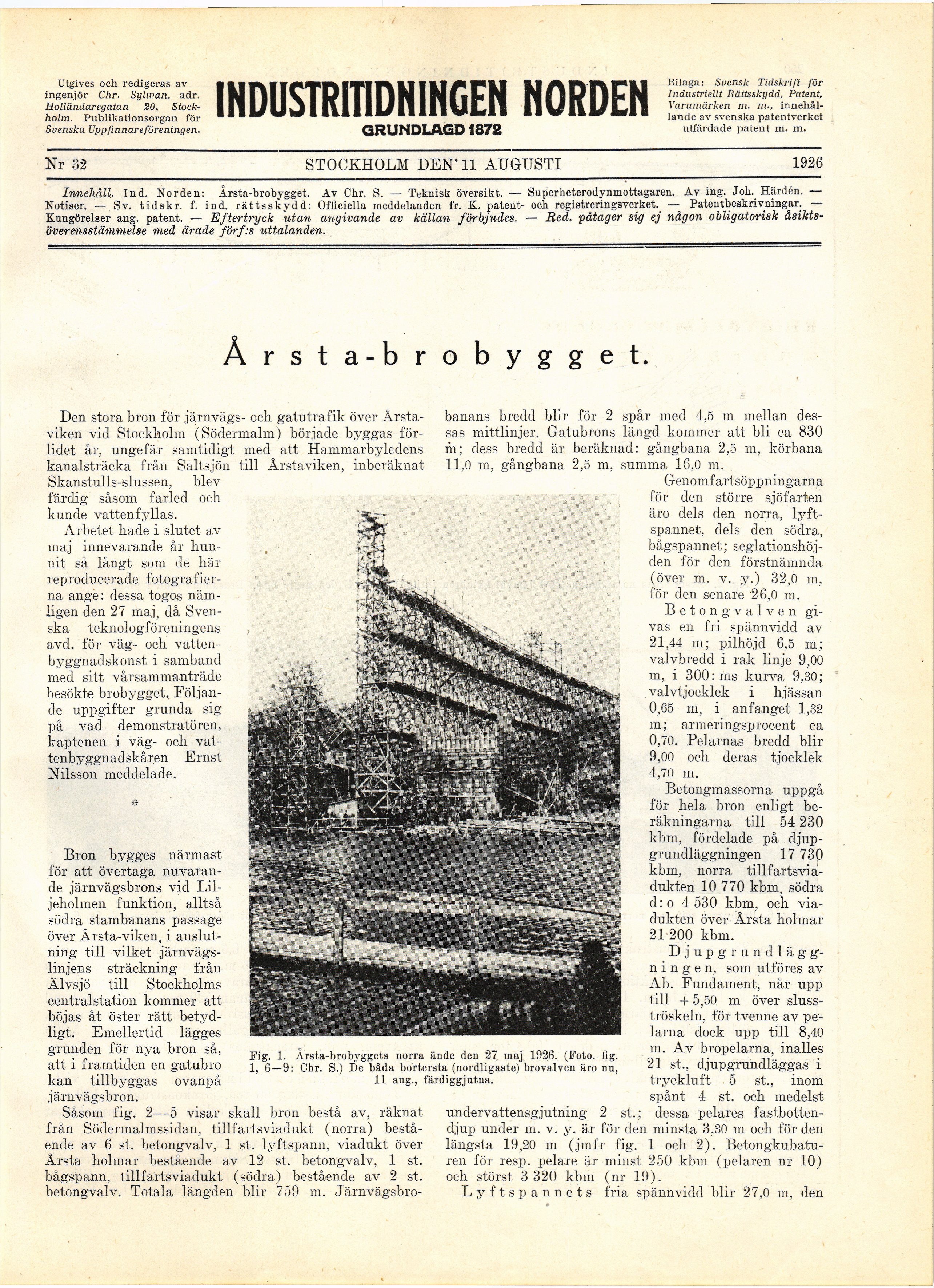 Innehåll. Ind. Norden: Årsta-brobygget. Av Chr. S. — Teknisk översikt. — Superheterodynmottagaren. Av ing. Joh. Härden. —