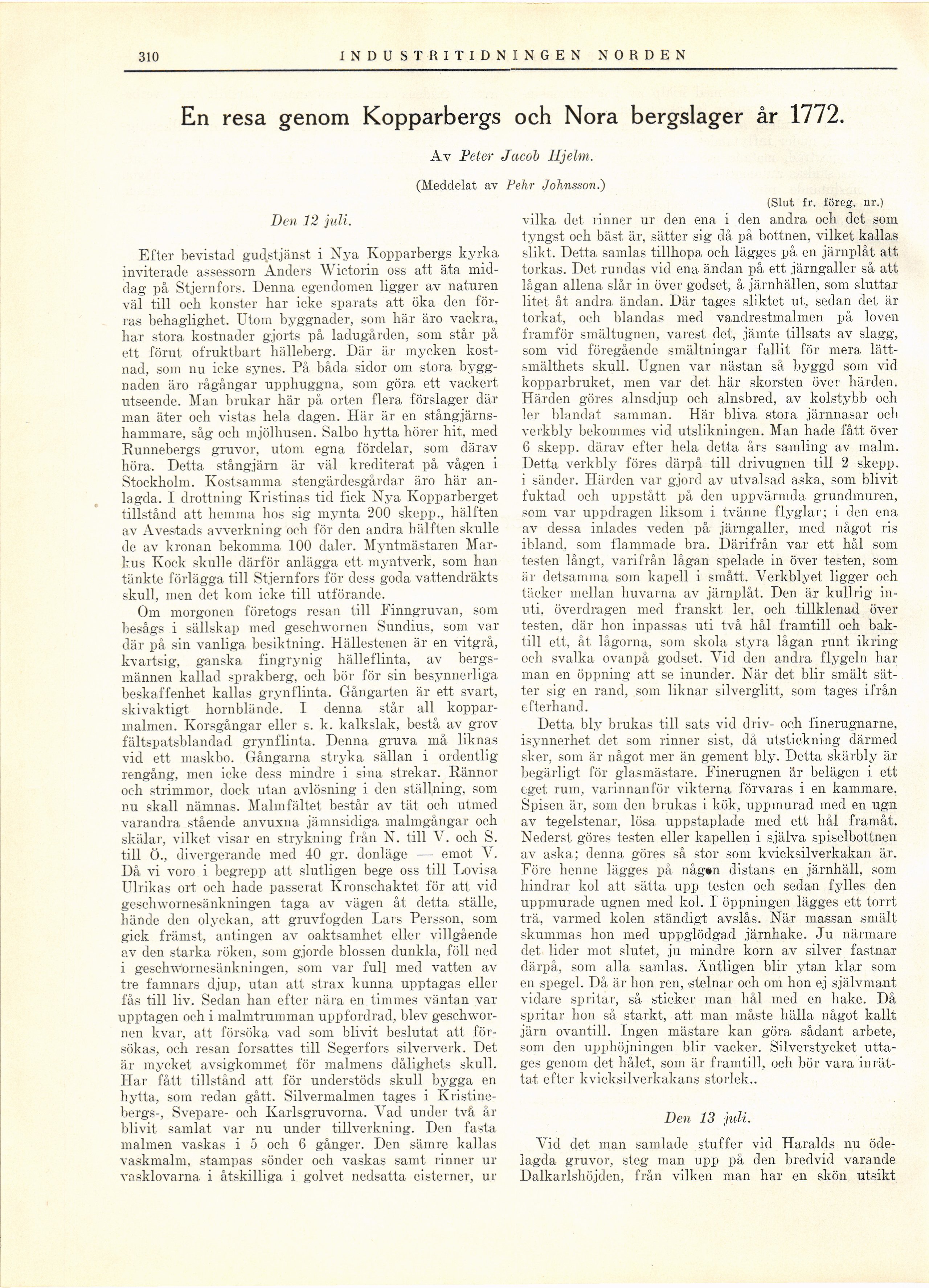 (Meddelat av Pehr Johnsson.)