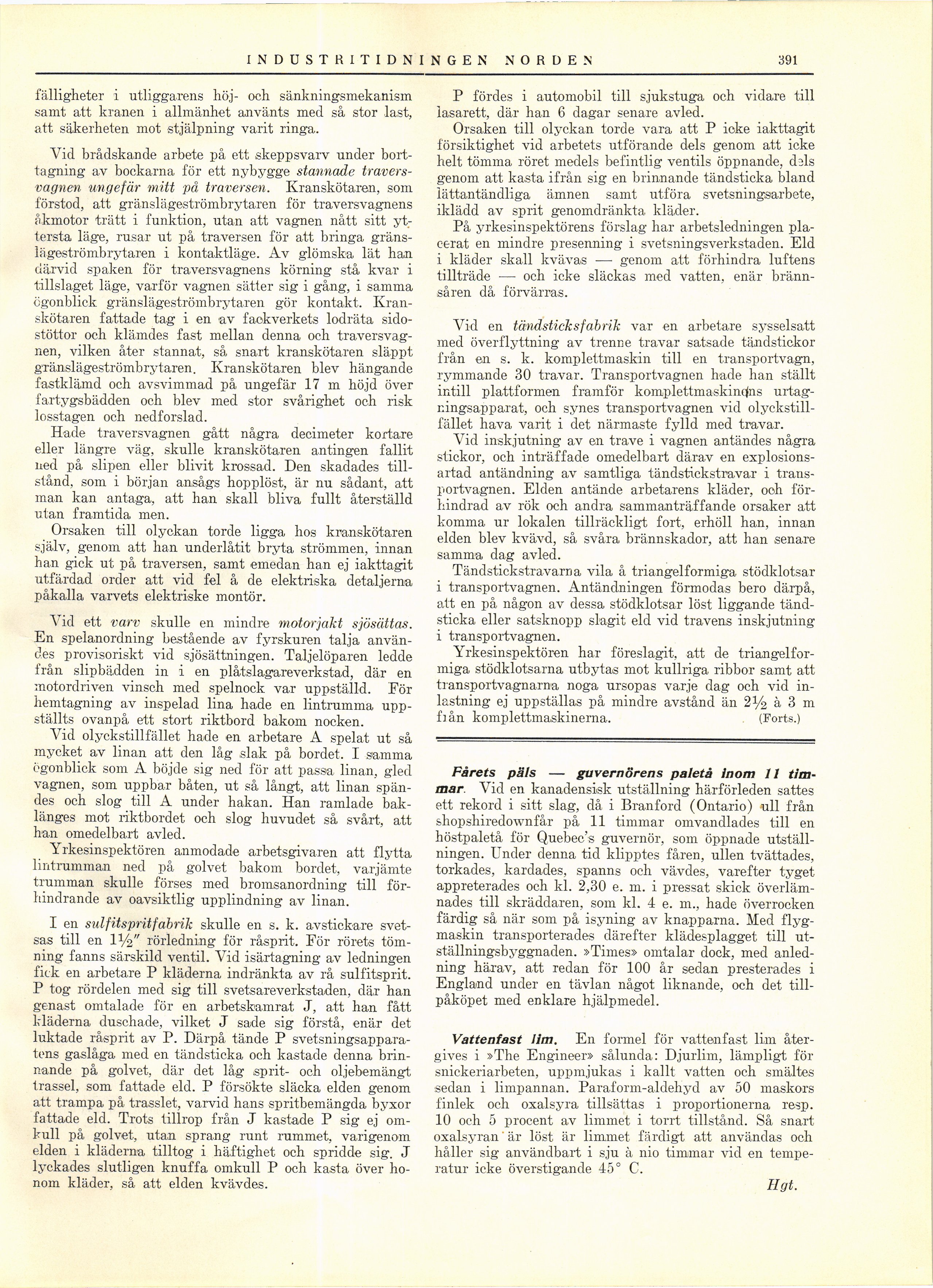 fick en arbetare P kläderna indränkta av rå sulfitsprit.