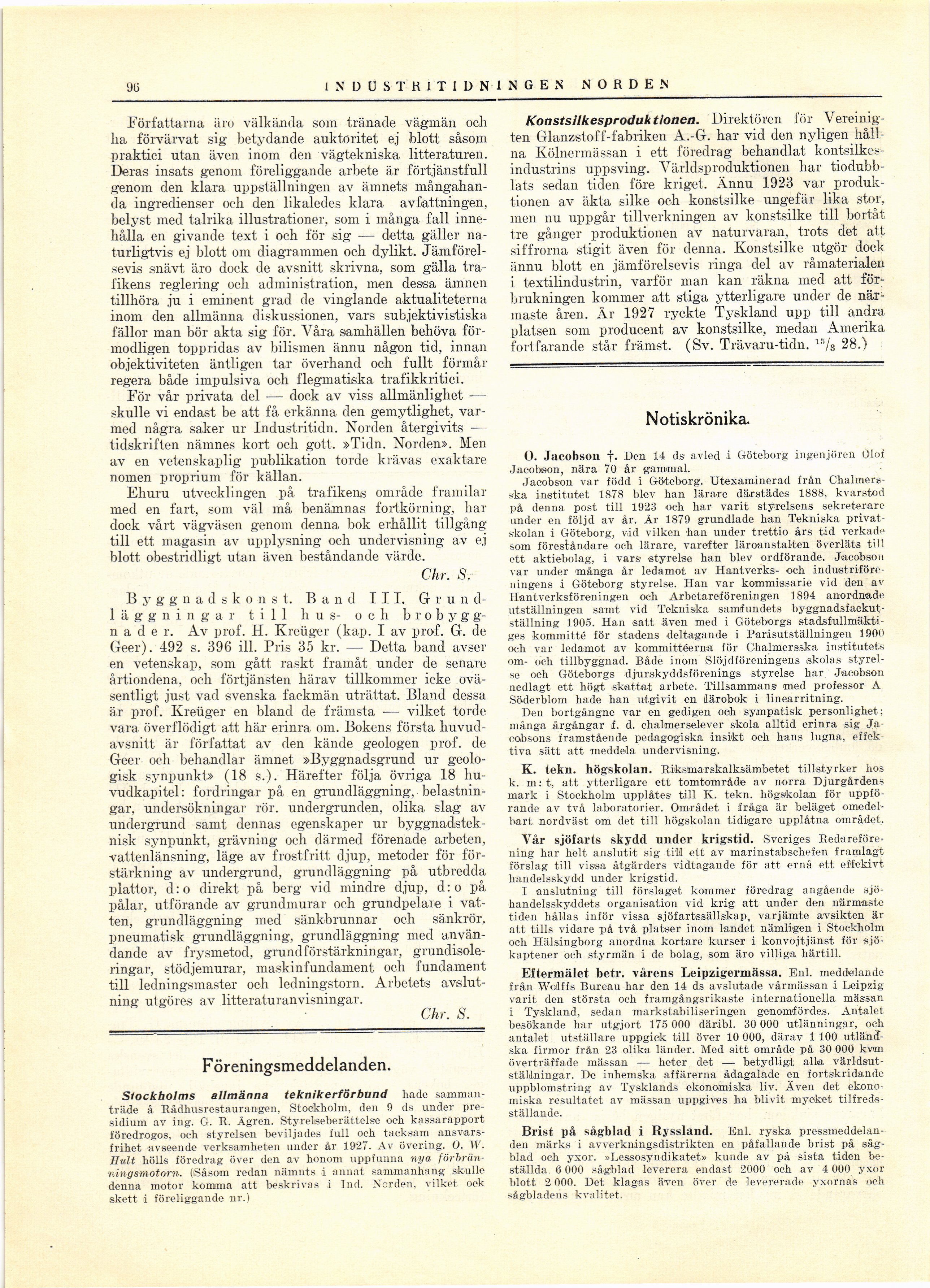O. Jacobson †. Den 14 ds avled i Göteborg ingenjören Olof