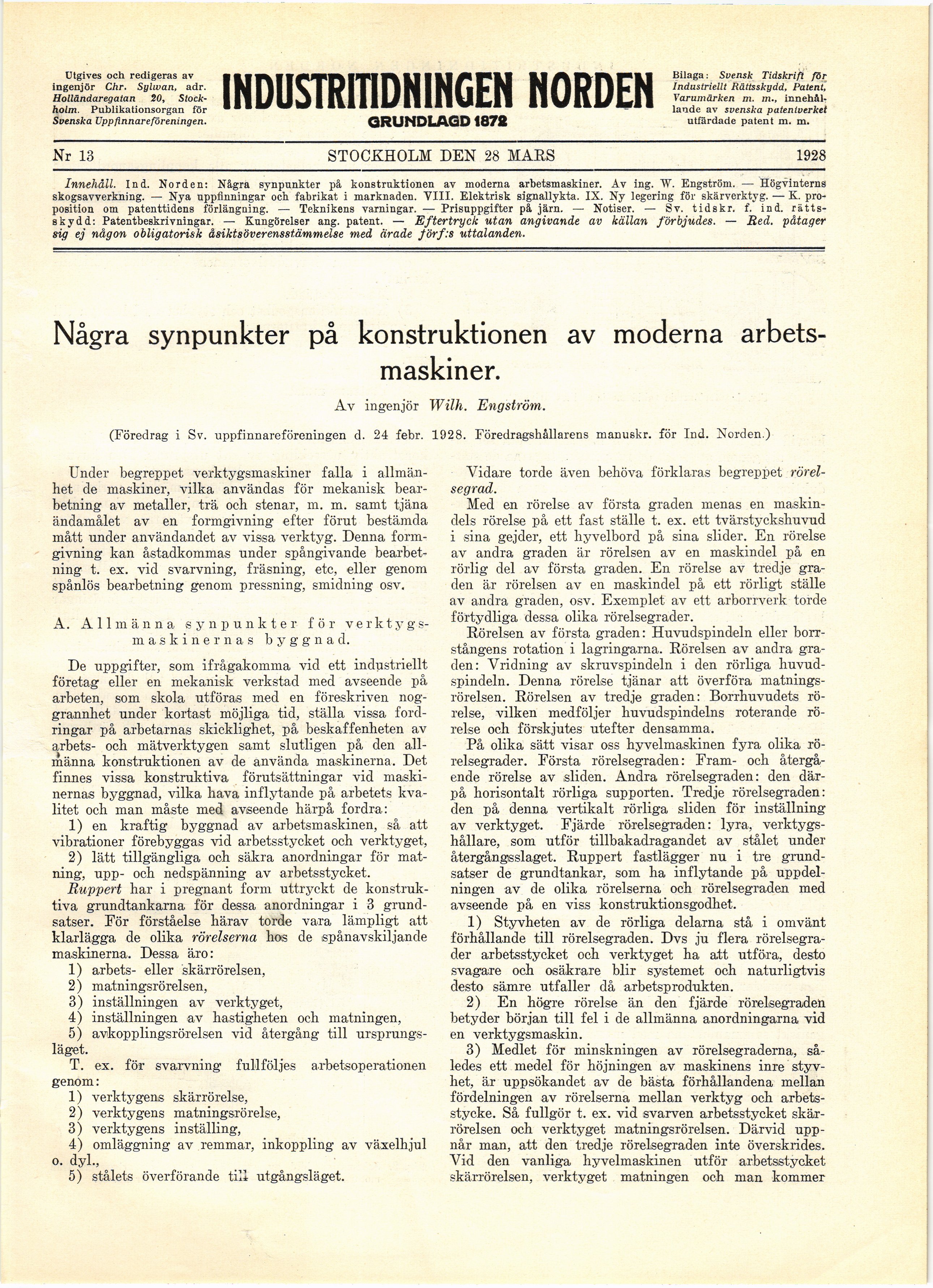 Nr 13 STOCKHOLM DEN 28 MARS 1928