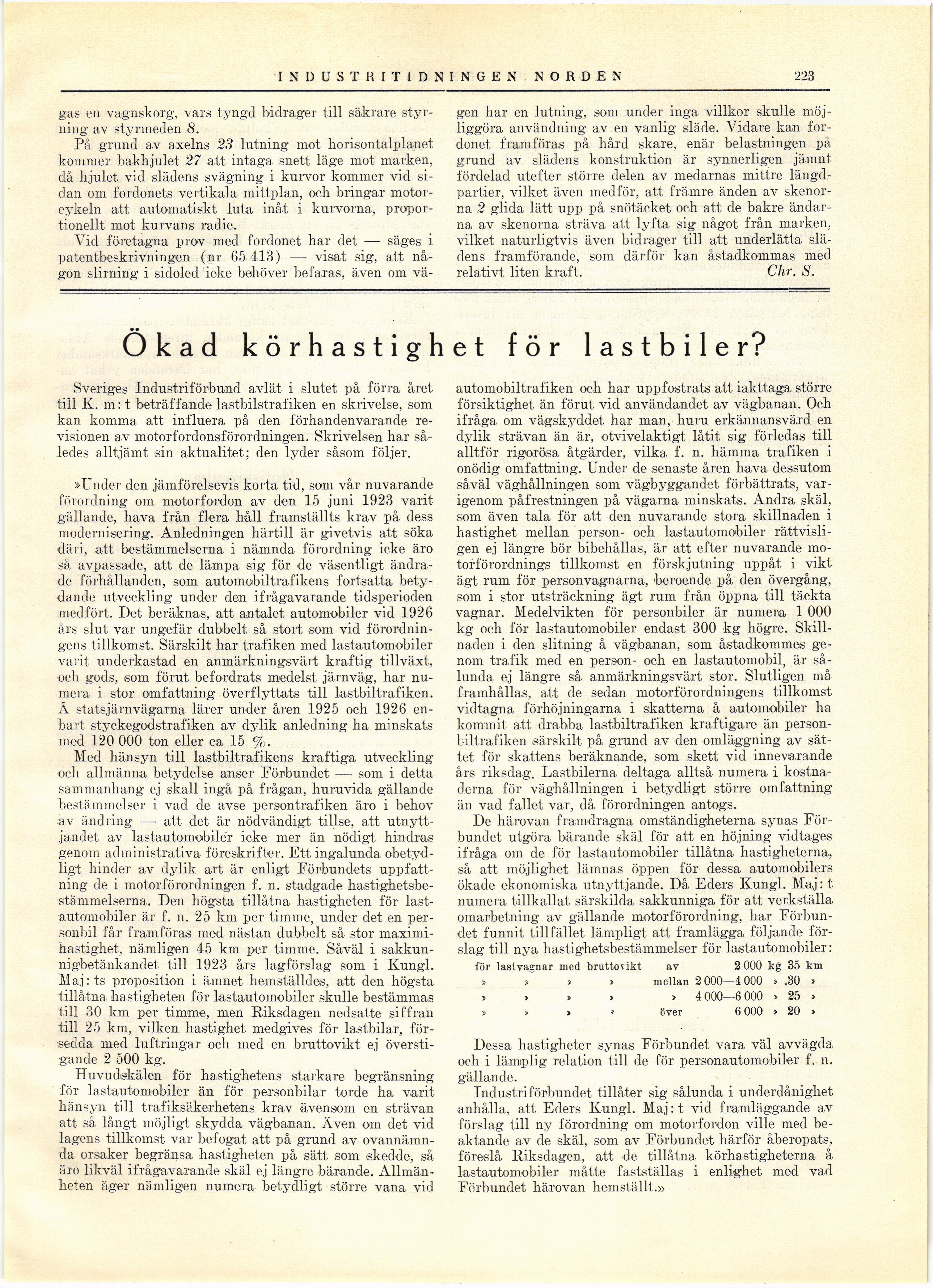 ifråga, om de för lastautomobiler tillåtna hastigheterna,