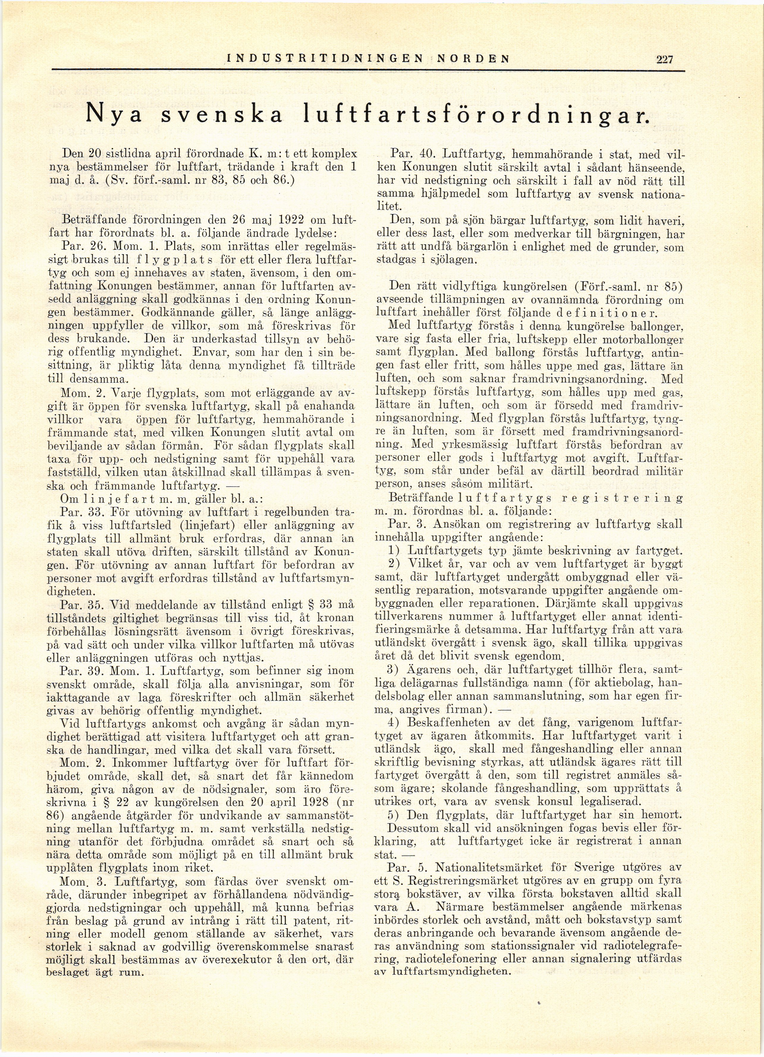 Par. 40. Luftfartyg, hemmahörande i stat, med