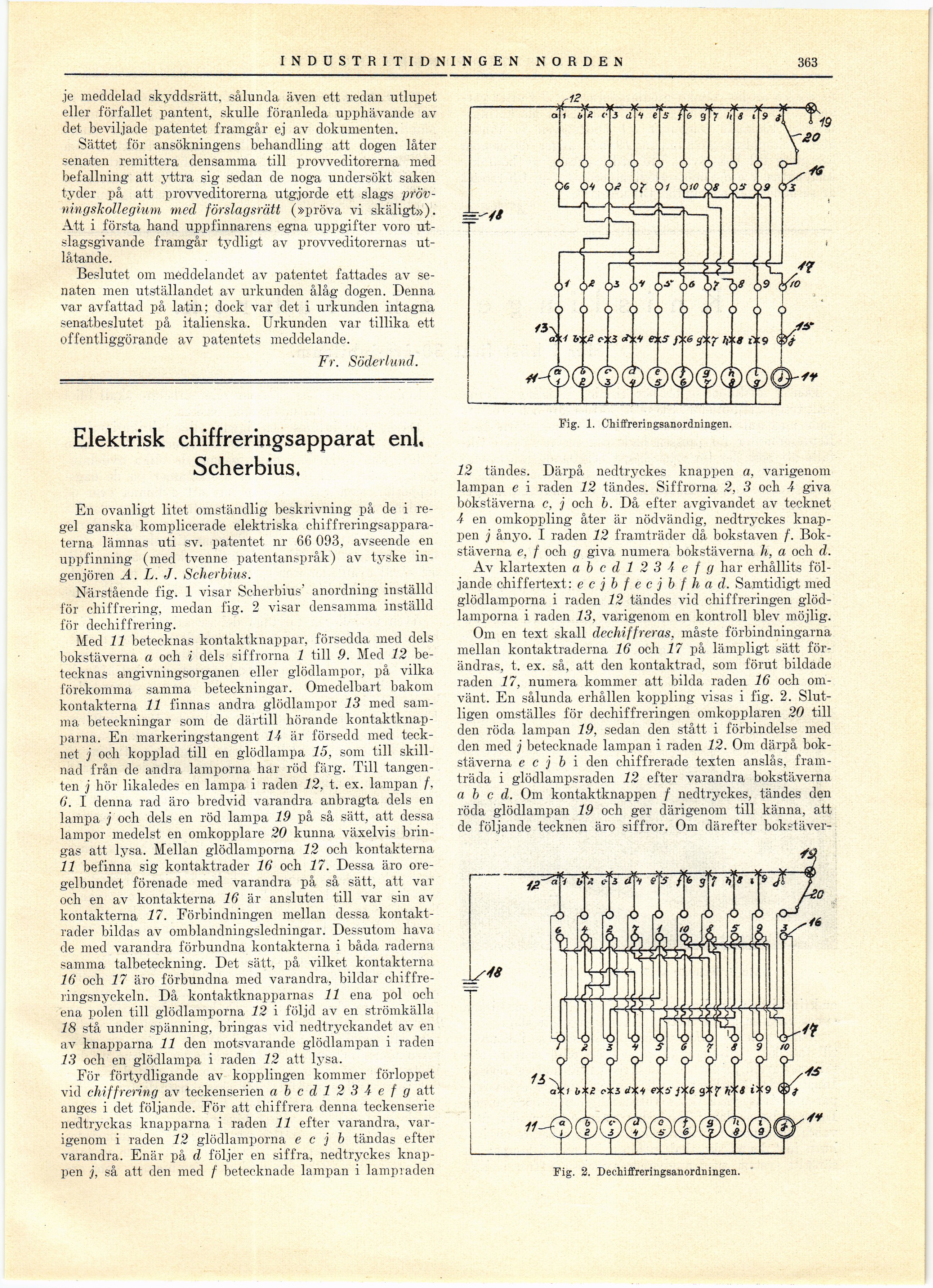 Närstående fig. 1 visar Scherbius’ anordning inställd