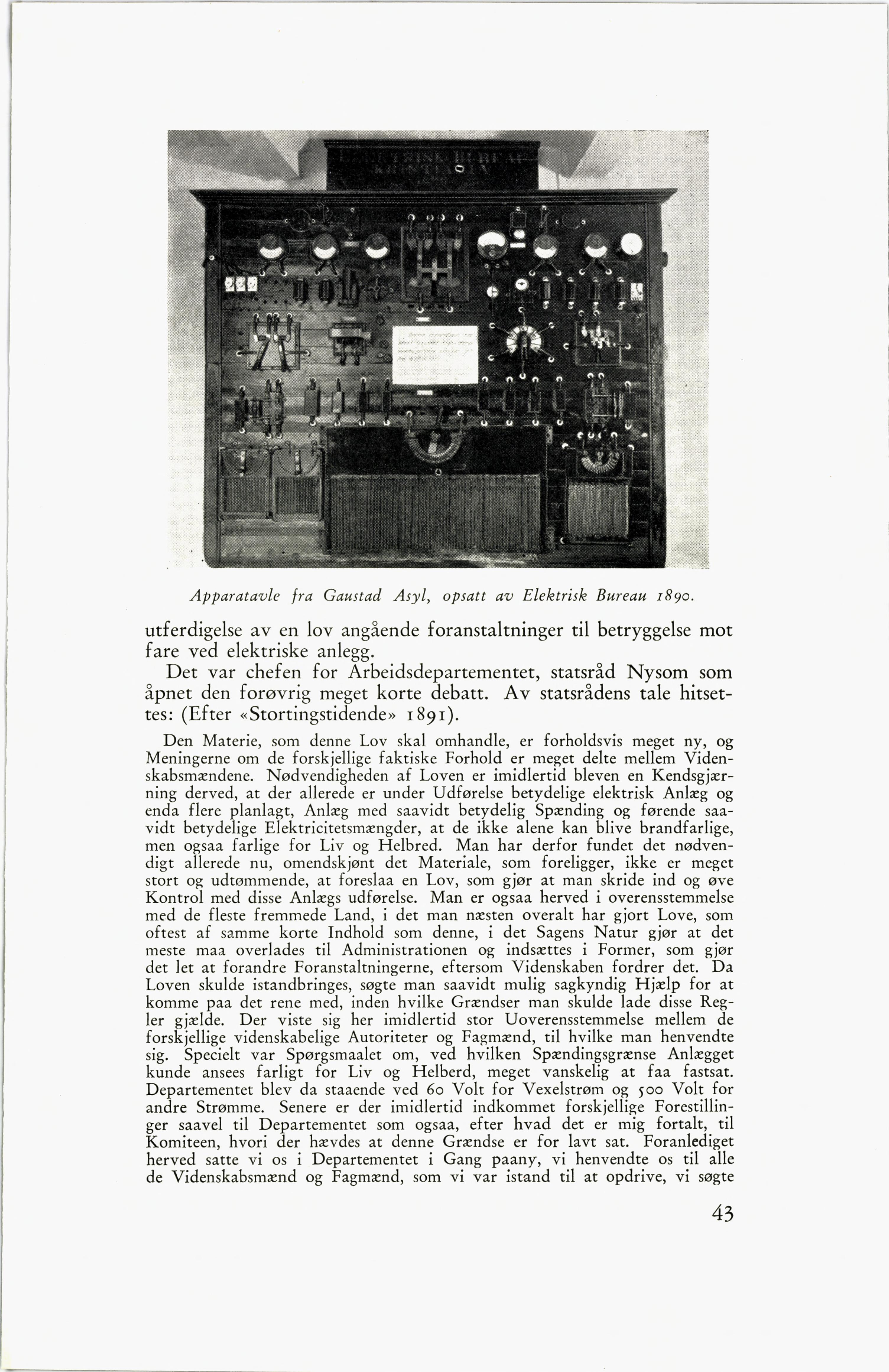 Appar atavle fra Gaustad Asyl, opsatt av Elektrisk Bureau 1890.