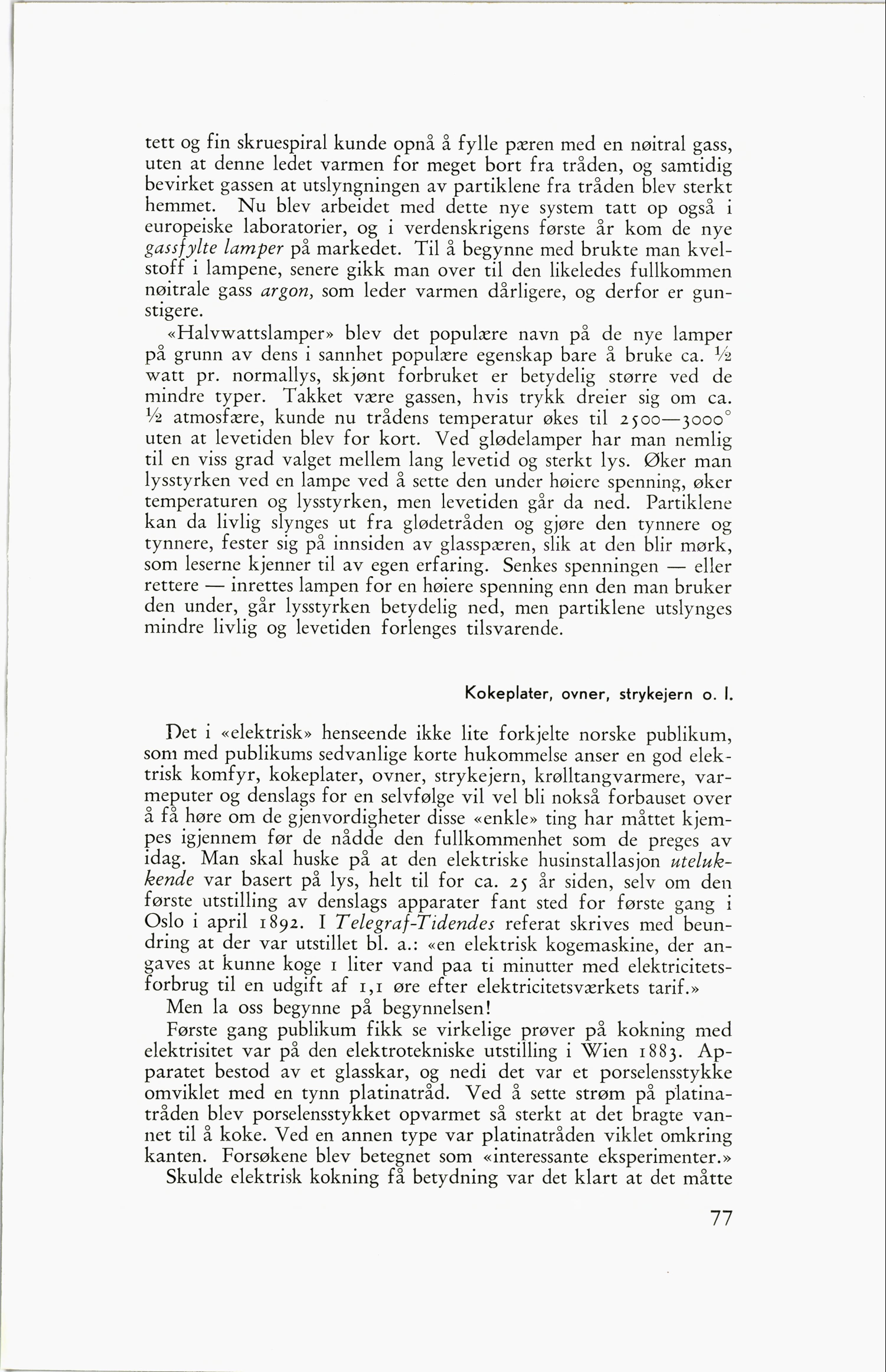 kvel-stoff i lampene, senere gikk man over til den likeledes fullkommen