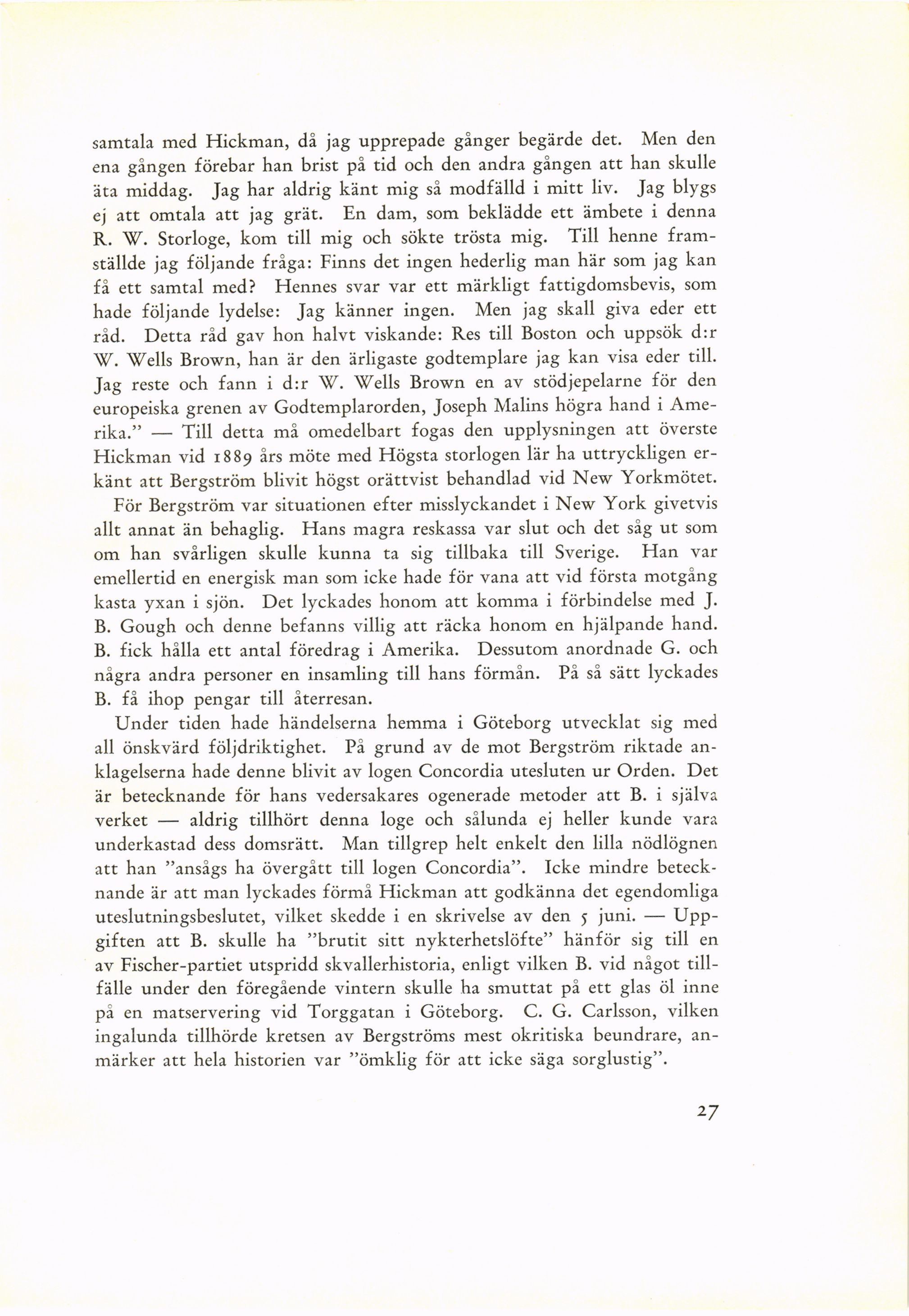att han "ansågs ha övergått till logen Concordia". leke mindre