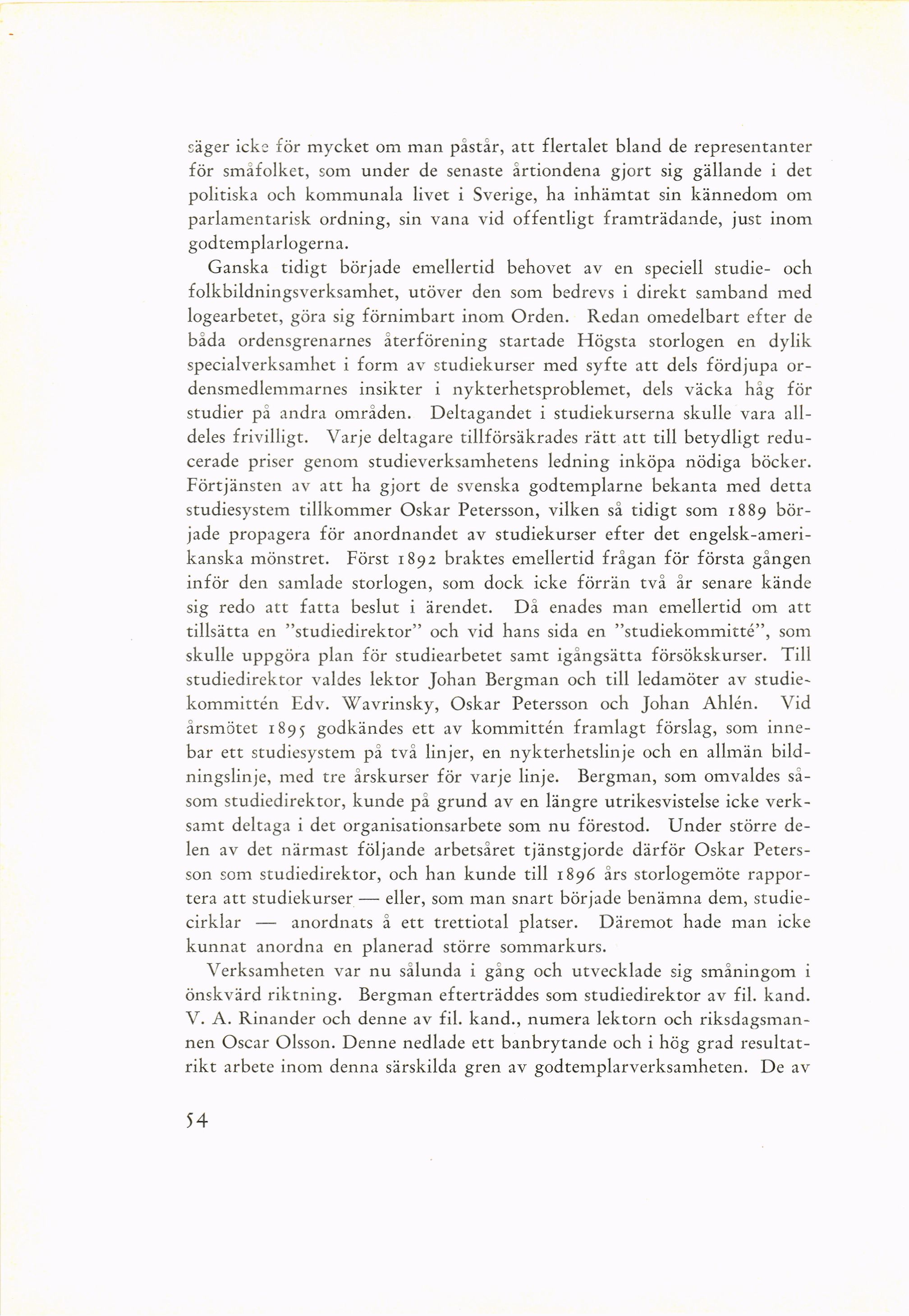 Petersson som studiedirektor, och han kunde till 1896 års storlogemöte