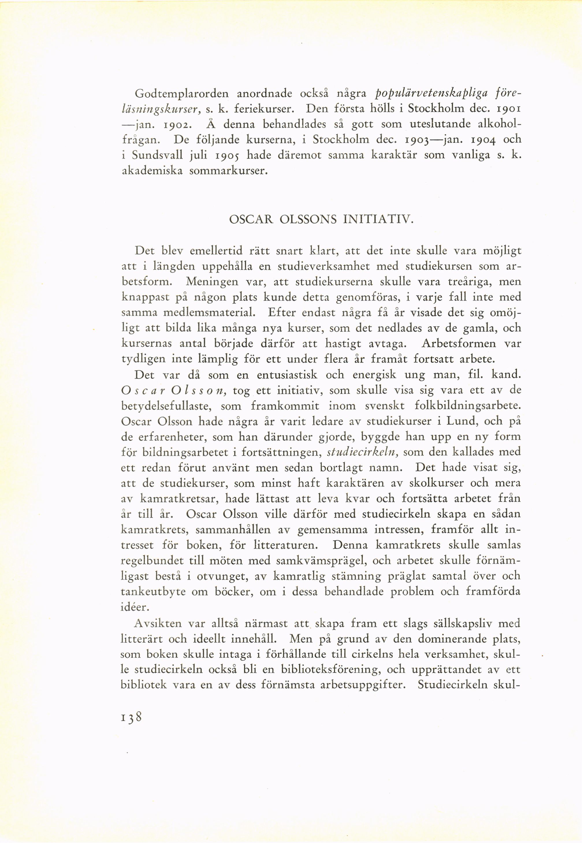 år till år. Oscar Olsson ville därför med studiecirkeln skapa en sådan