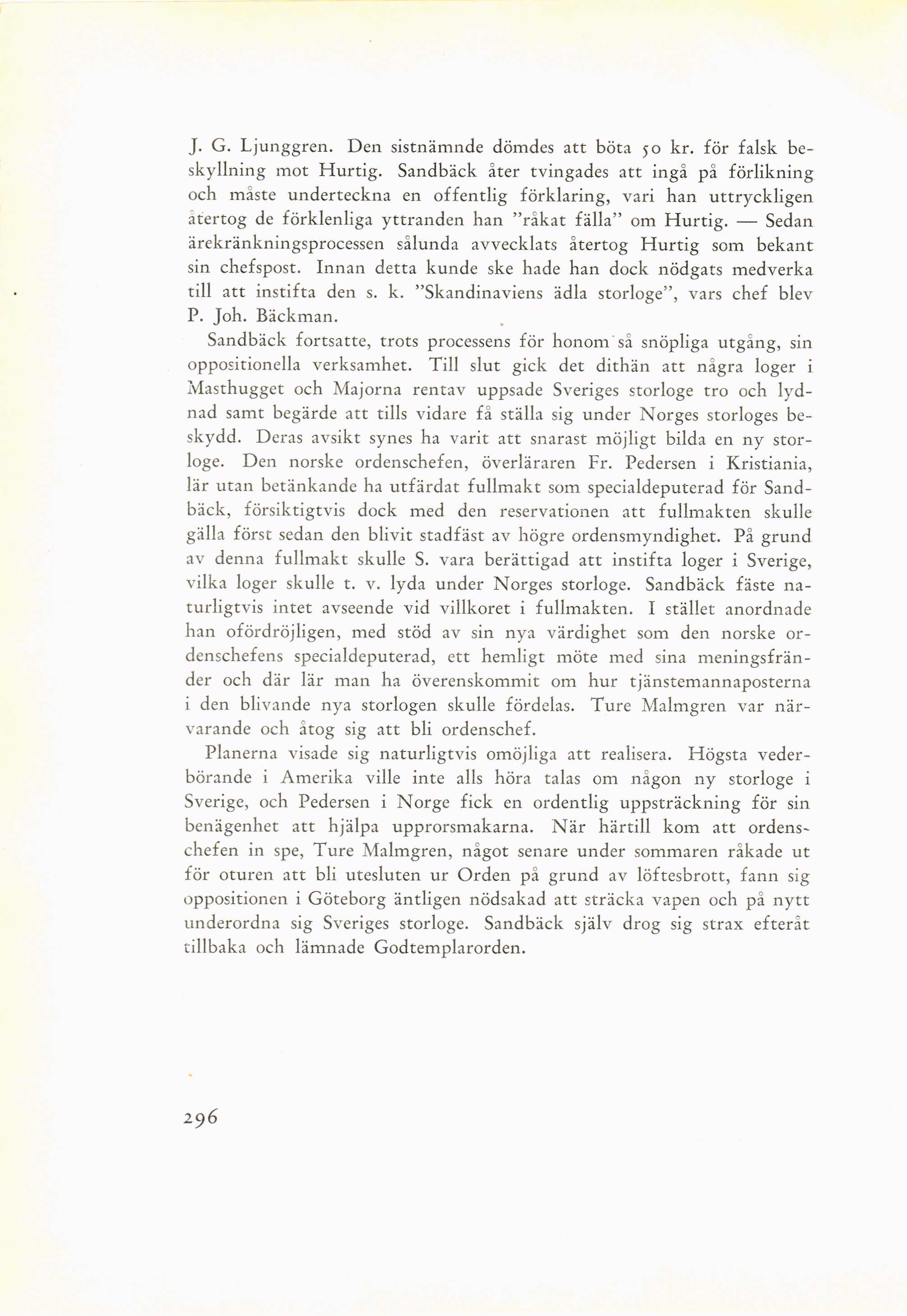underordna sig Sveriges storloge. Sandbäck själv drog sig strax efteråt