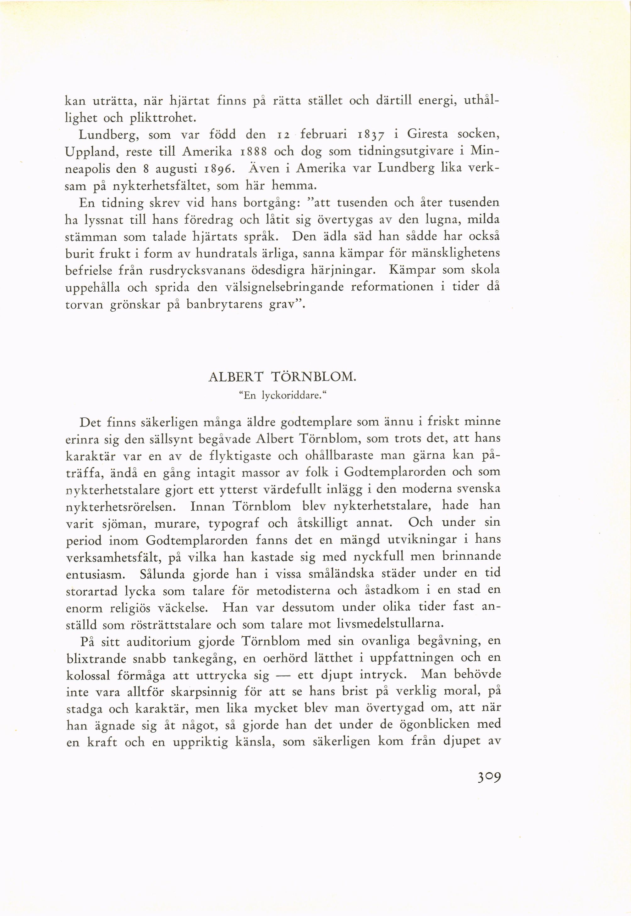 nykterhetsrörelsen. Innan Törnblom blev nykterhetstalare, hade han