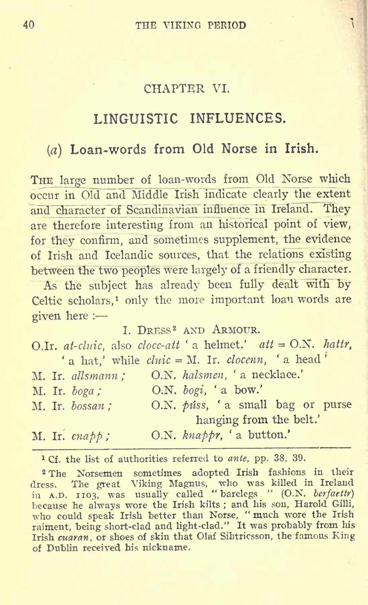 Full resolution (JPEG) - On this page / på denna sida - VI. Linguistic Influences - (a) Loan-words from Old Norse in Irish