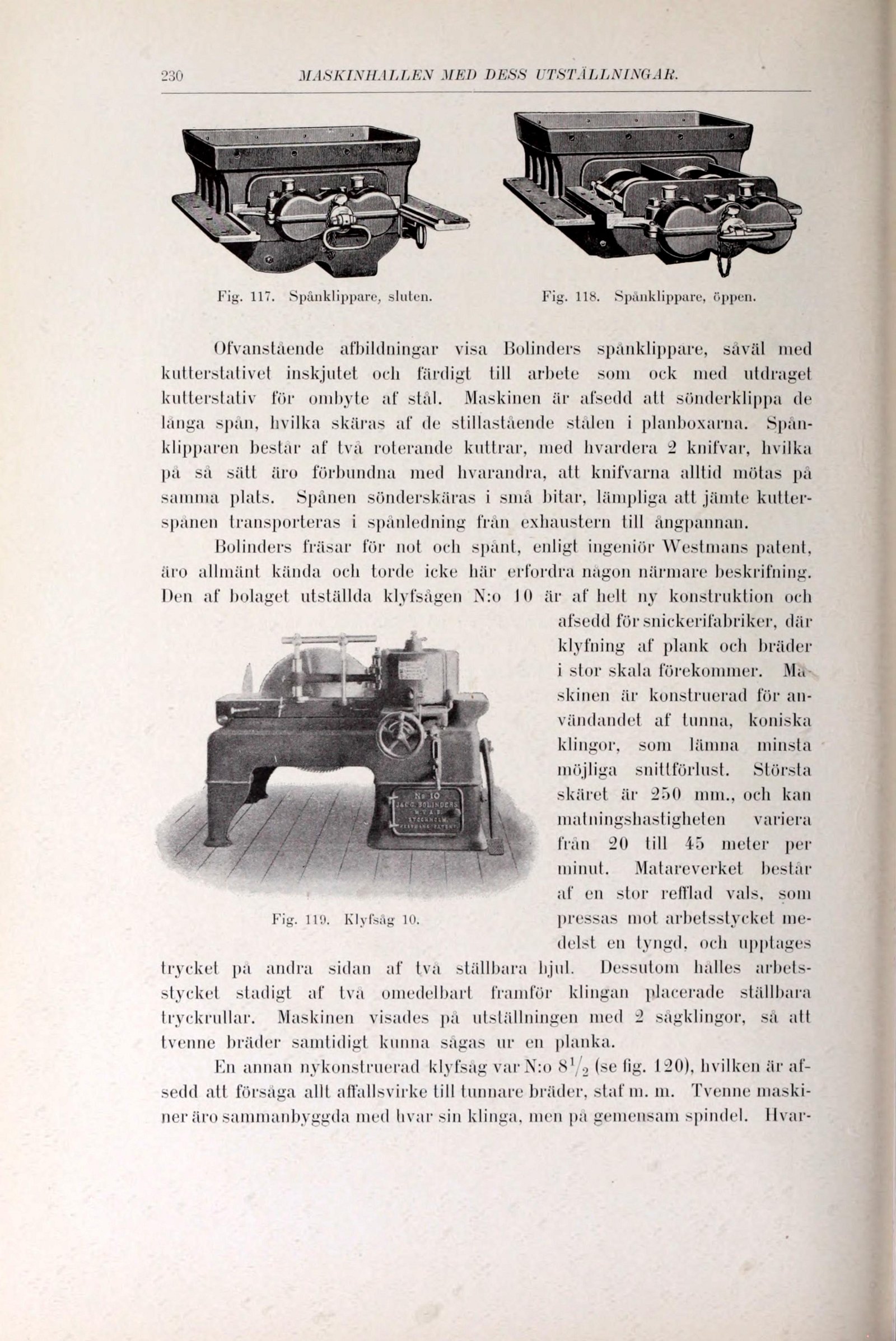 Ofvanstående afbildningar visa Bolinders spånklippare, saväl med