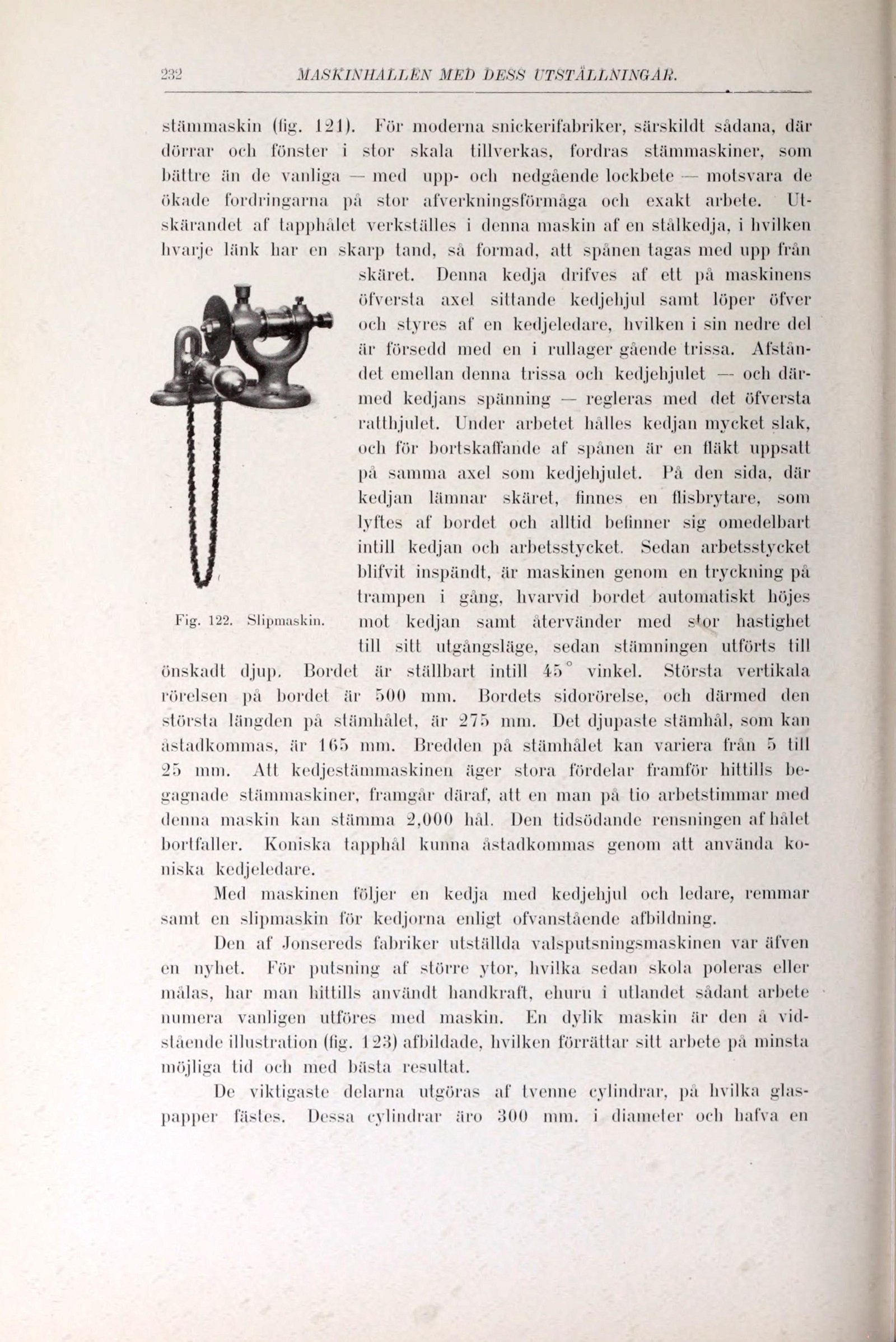 Fig. 122. Slipmaskin. mot kedjan samt återvänder med stor hastighet