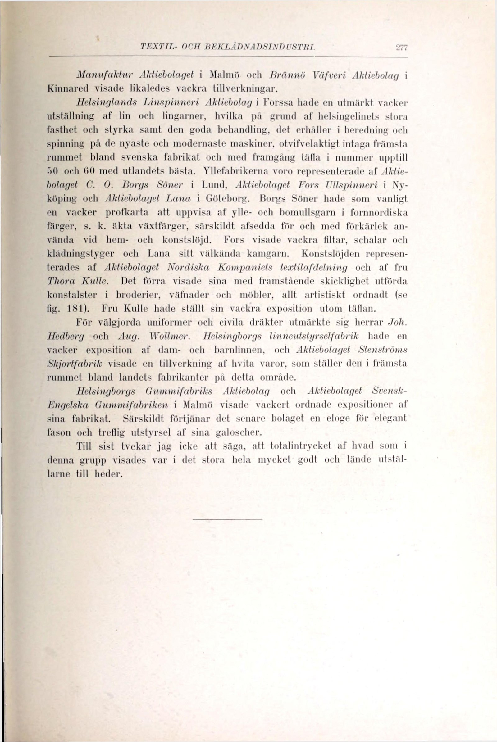 50 och 00 med utlandets bästa. Yllefabrikerna voro representerade af
