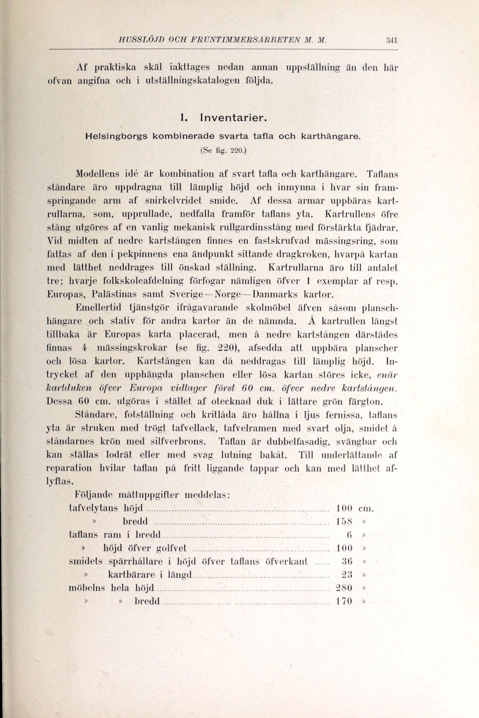 finnas 4 mässingskrokar (se lig. 220), afsedda att uppbära planscher