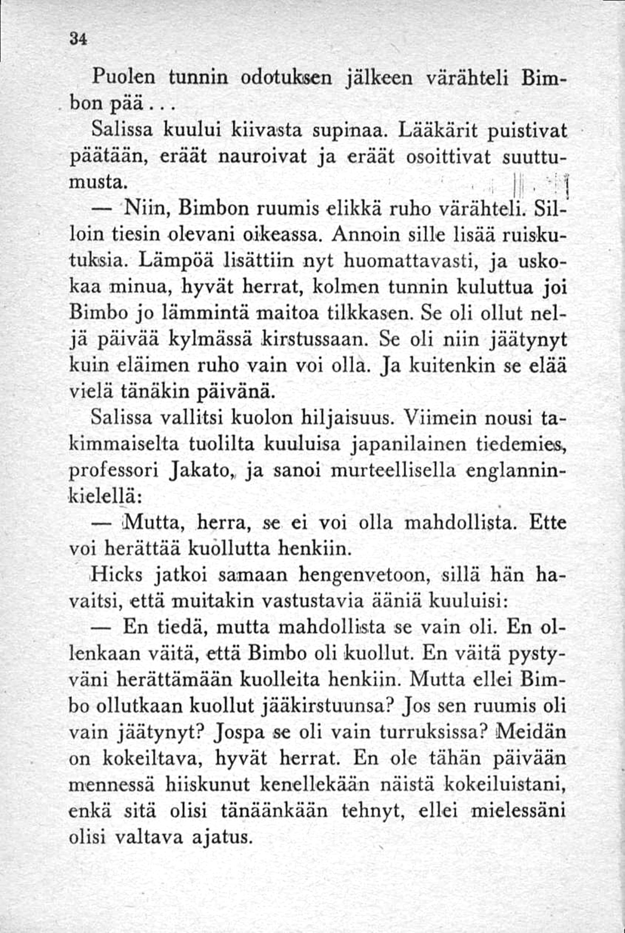 — Niin, Bimbon ruumis elikkä ruho värähteli.