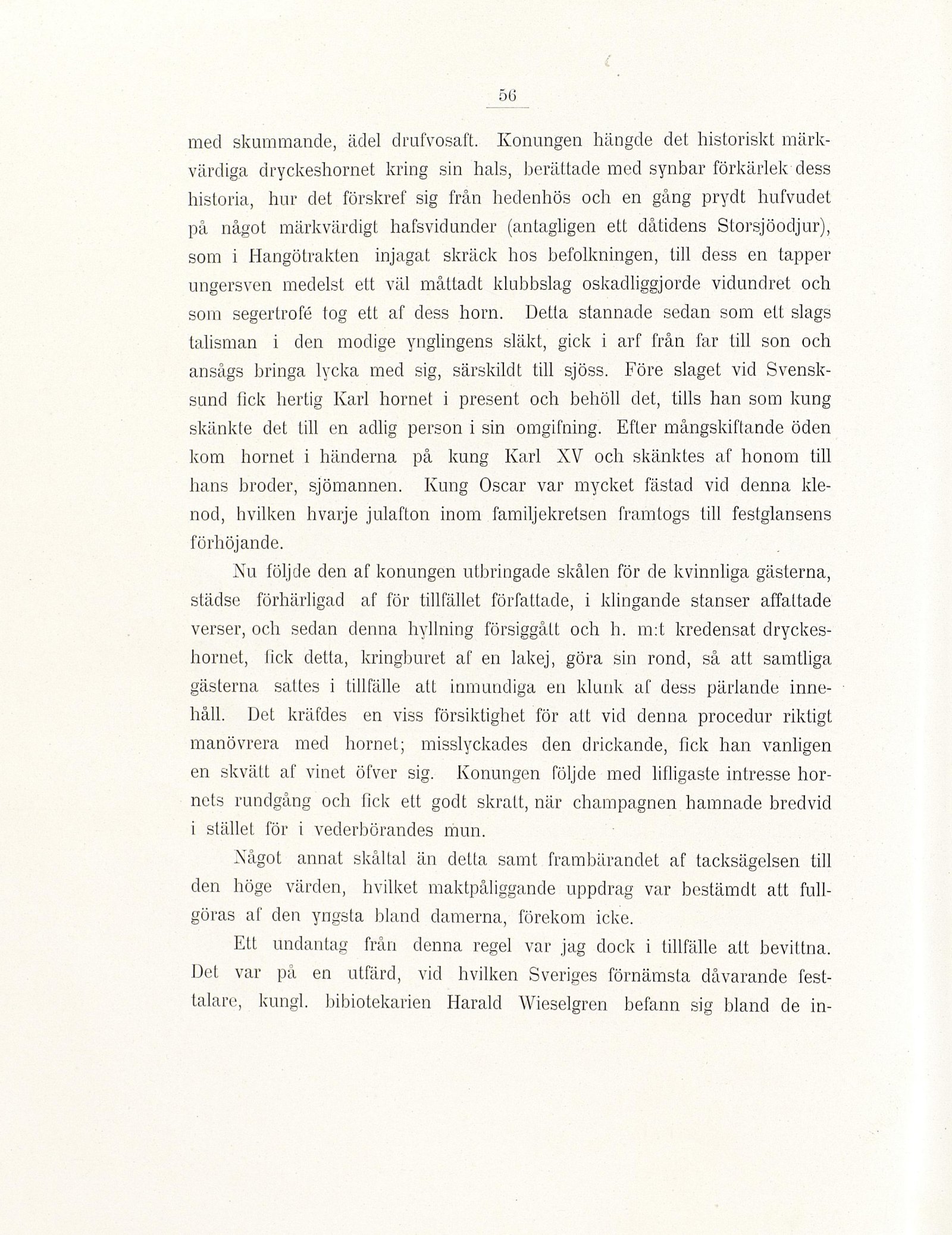 med skummande, ädel dmfvosaft. Konungen hängde det historiskt