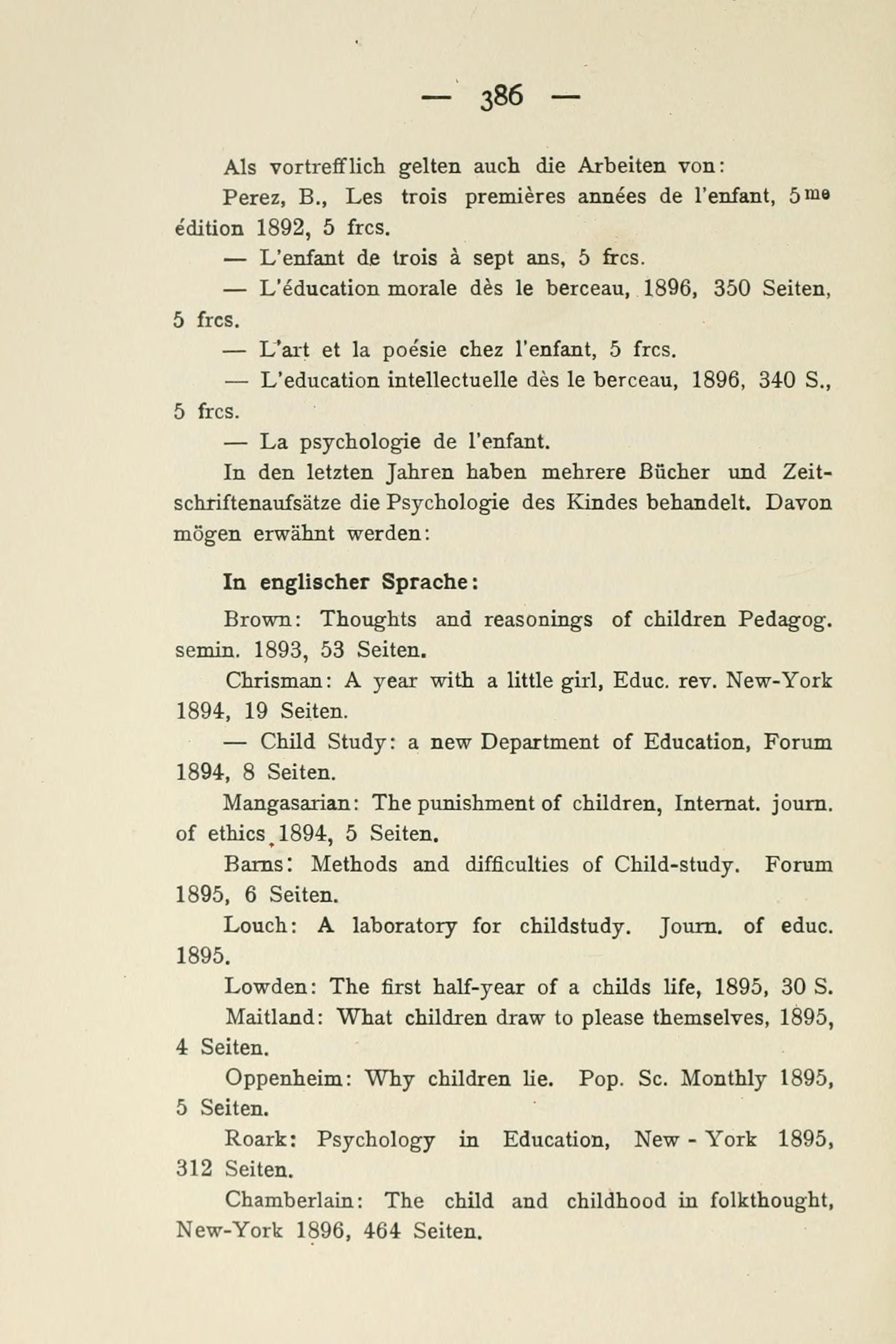 — L’education intellectuelle des le berceau, 1896, 340 S.,