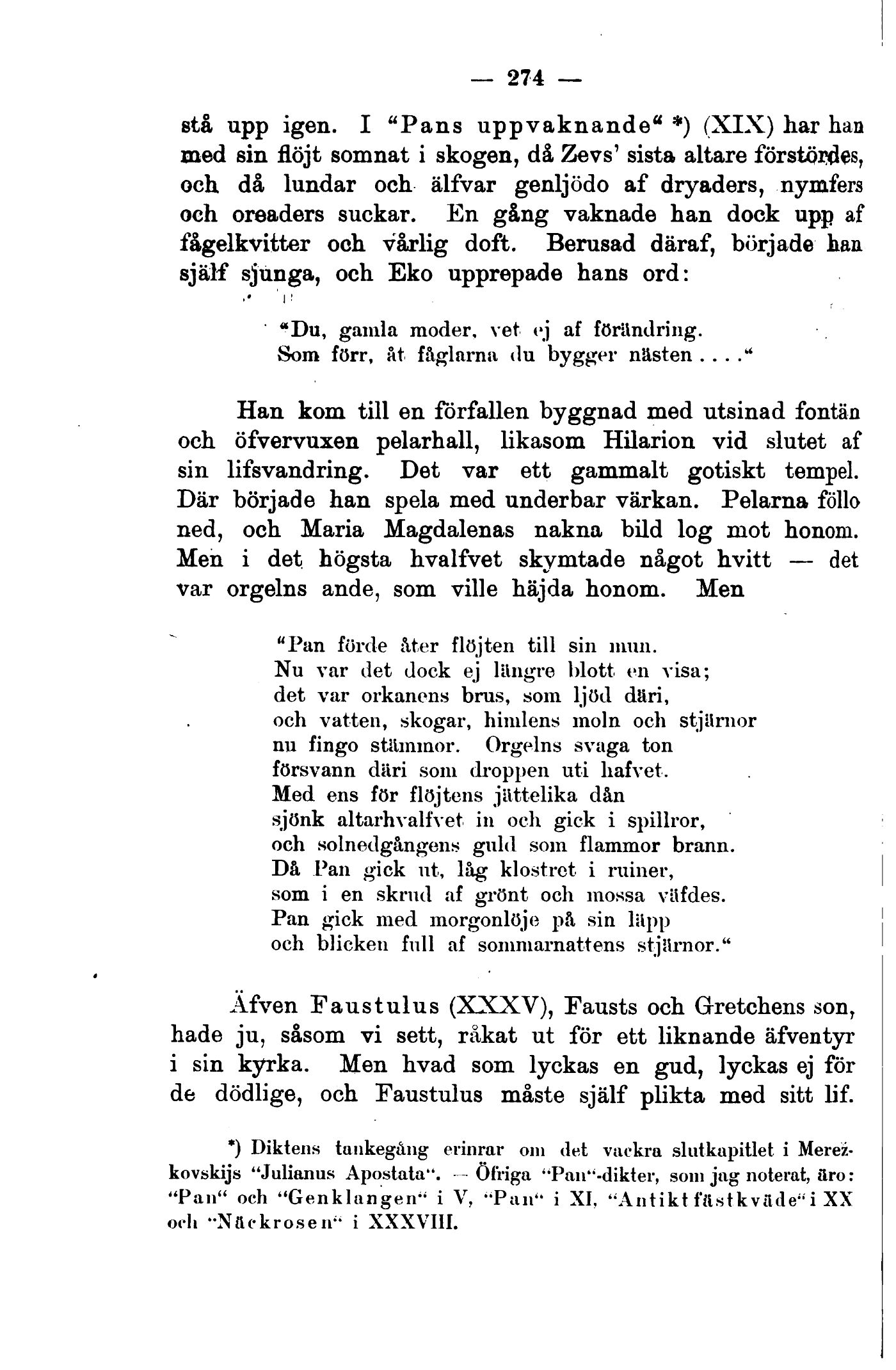 ‘Pan“ i XI, “Antikt fäs t k väde“ i XX