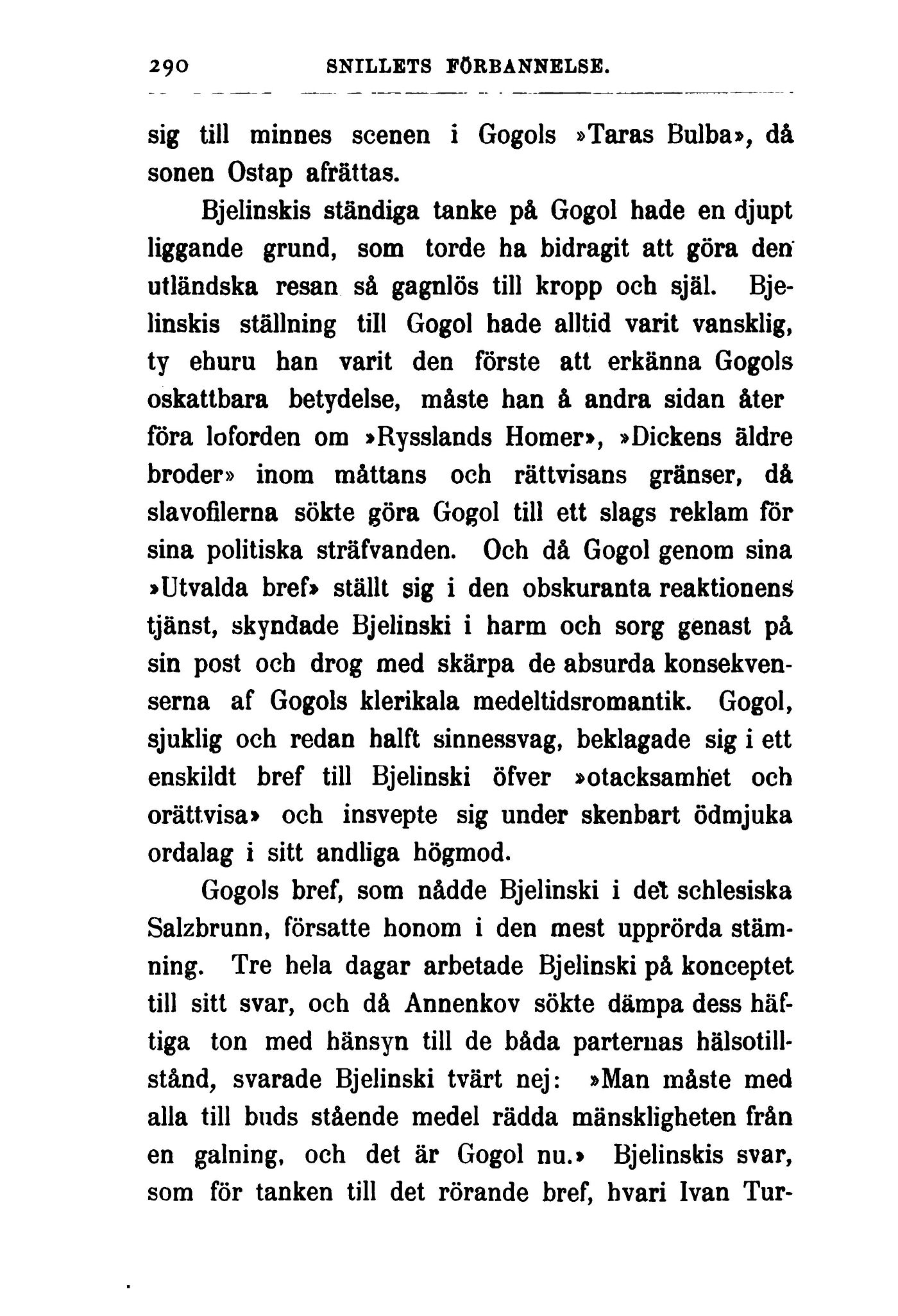 en galning, och det är Gogol nu.» Bjelinskis svar,