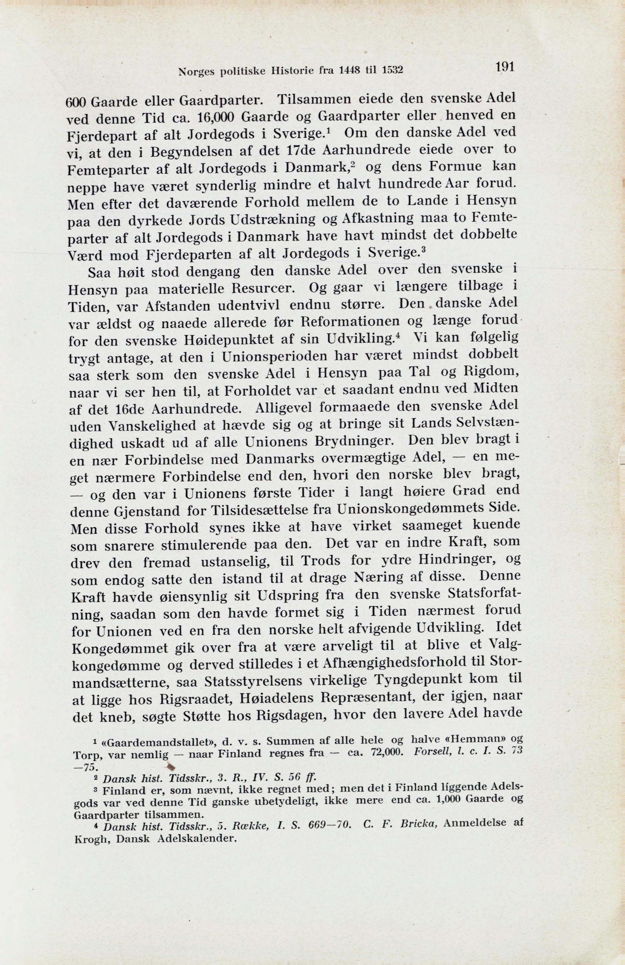 Adelsgods var ved denne Tid ganske ubetydeligt, ikke mere end ca. 1,000 Gaarde og