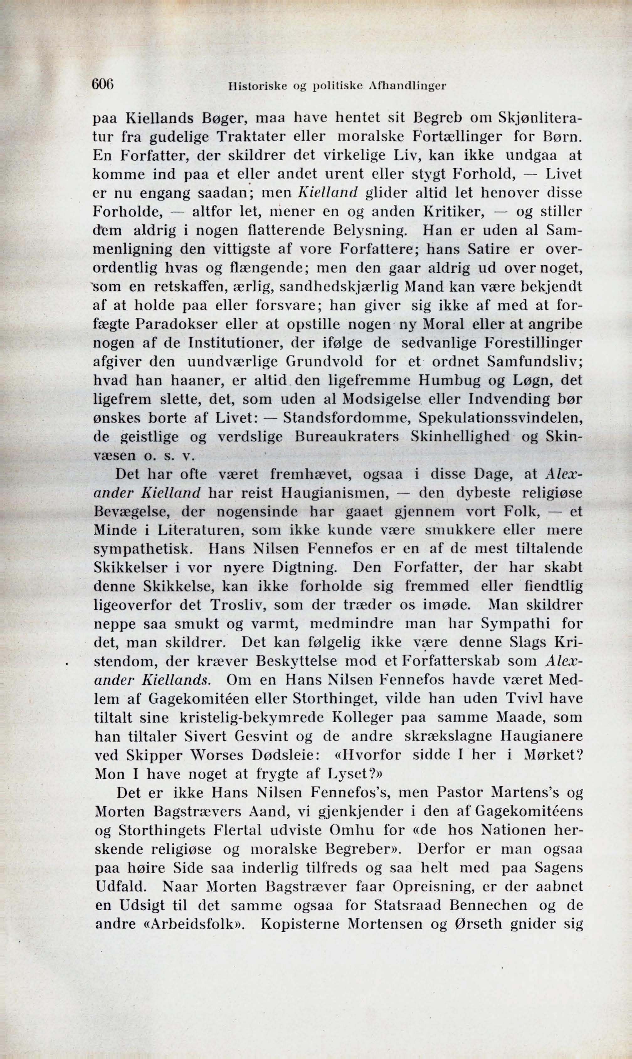 Alexander Kielland har reist Haugianismen, — den dybeste religiøse