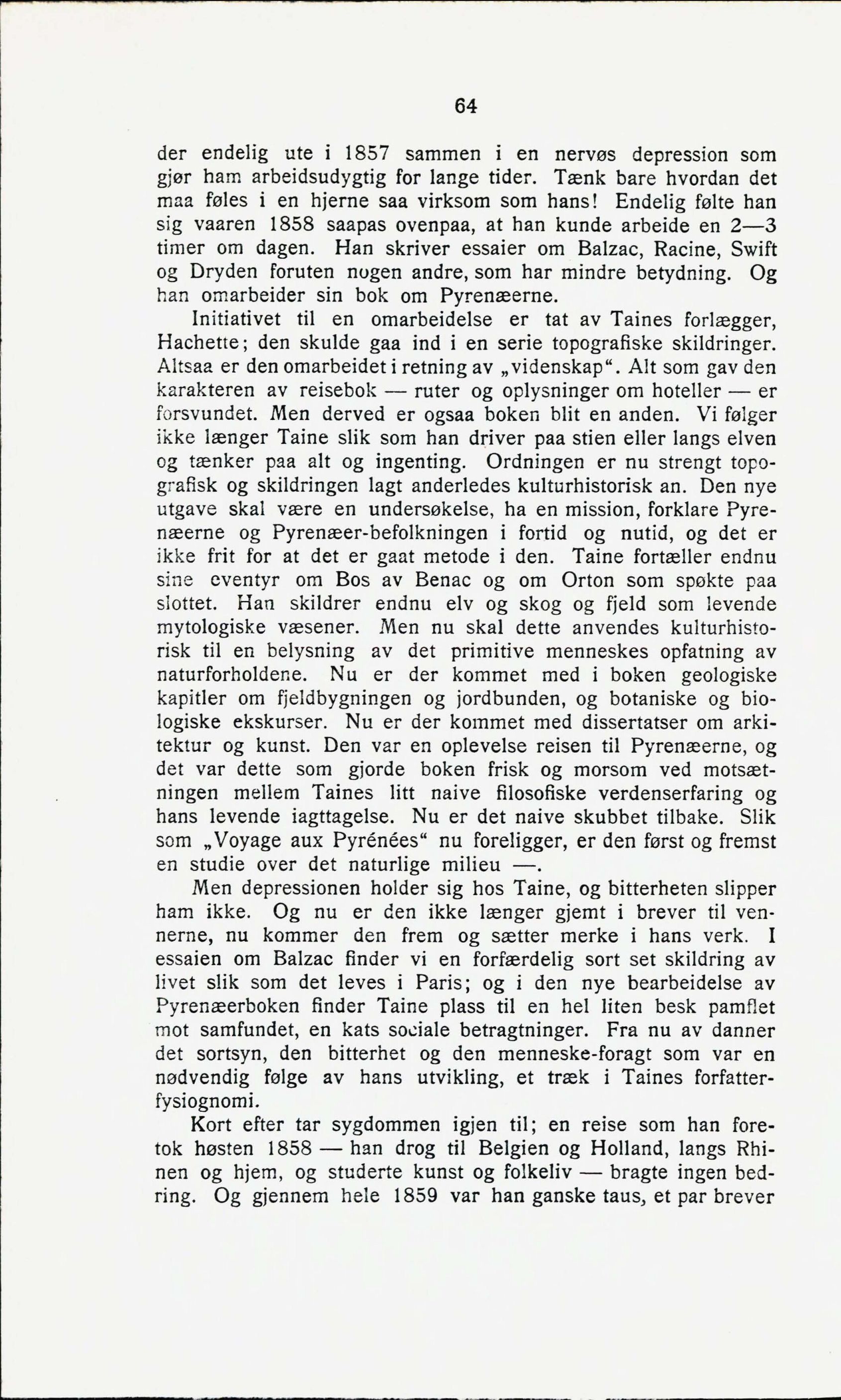 Men depressionen holder sig hos Taine, og bitterheten slipper