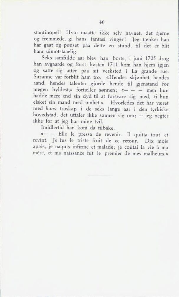 Seks samfulde aar blev han borte, i juni 1705 drog