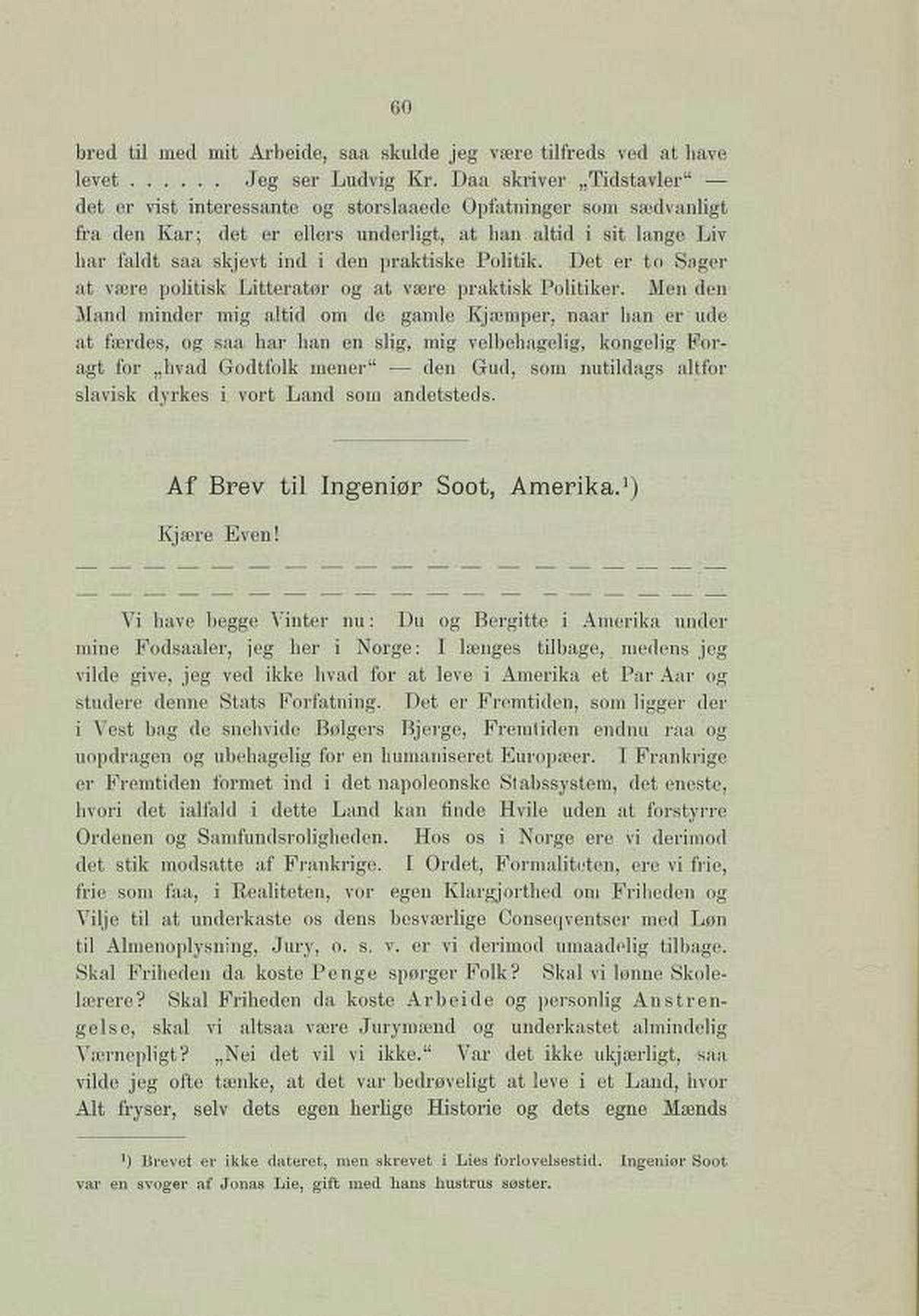 ’) Brevet er ikke duteret, men skrevet i Lies forlovelsestid. Ingeuior Soot