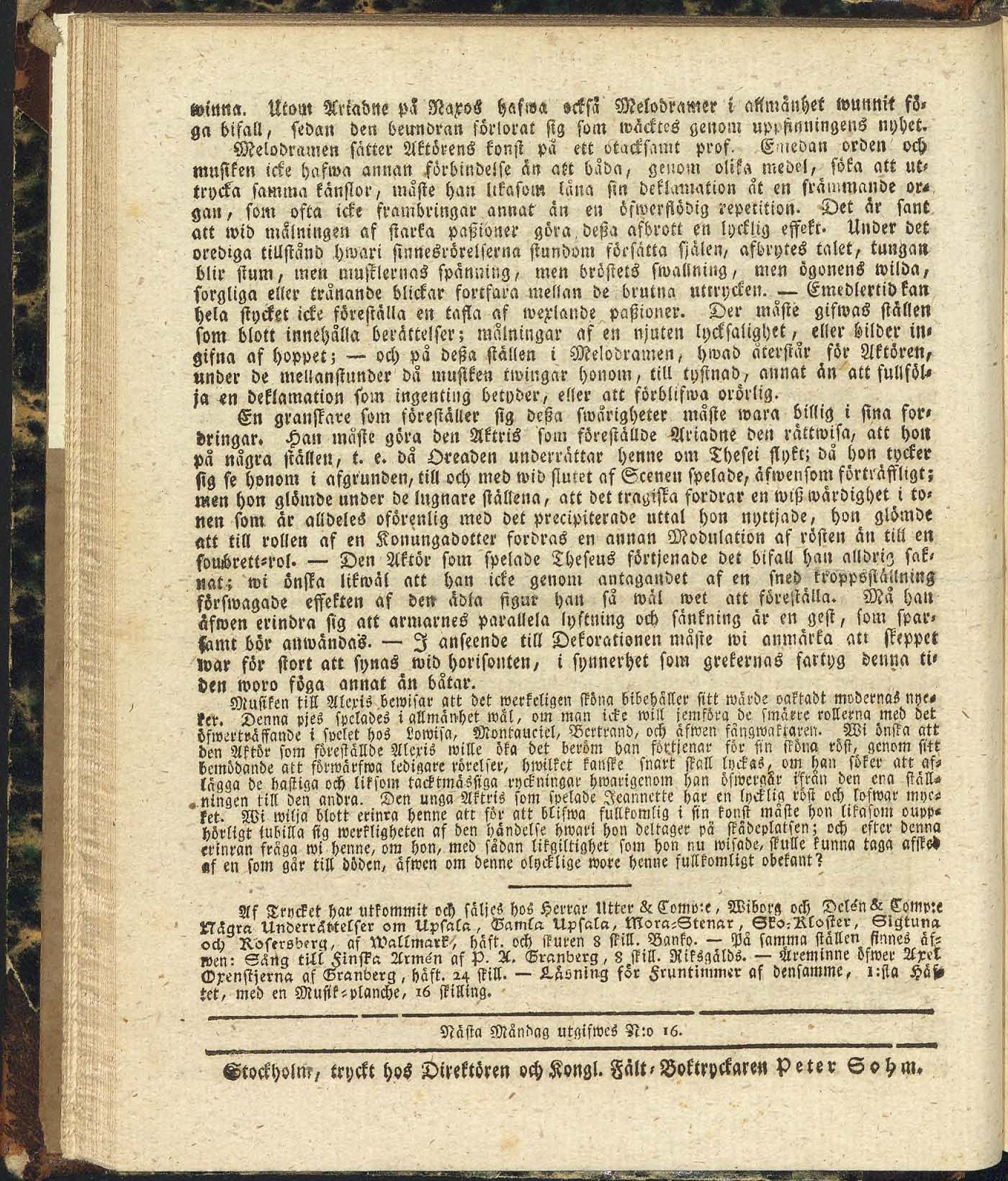 Full resolution (JPEG) - On this page / på denna sida - N:o 15. Fredagen den 18 Augusti 1809 - Dramatik - Af Trycket har utkommit och säljes