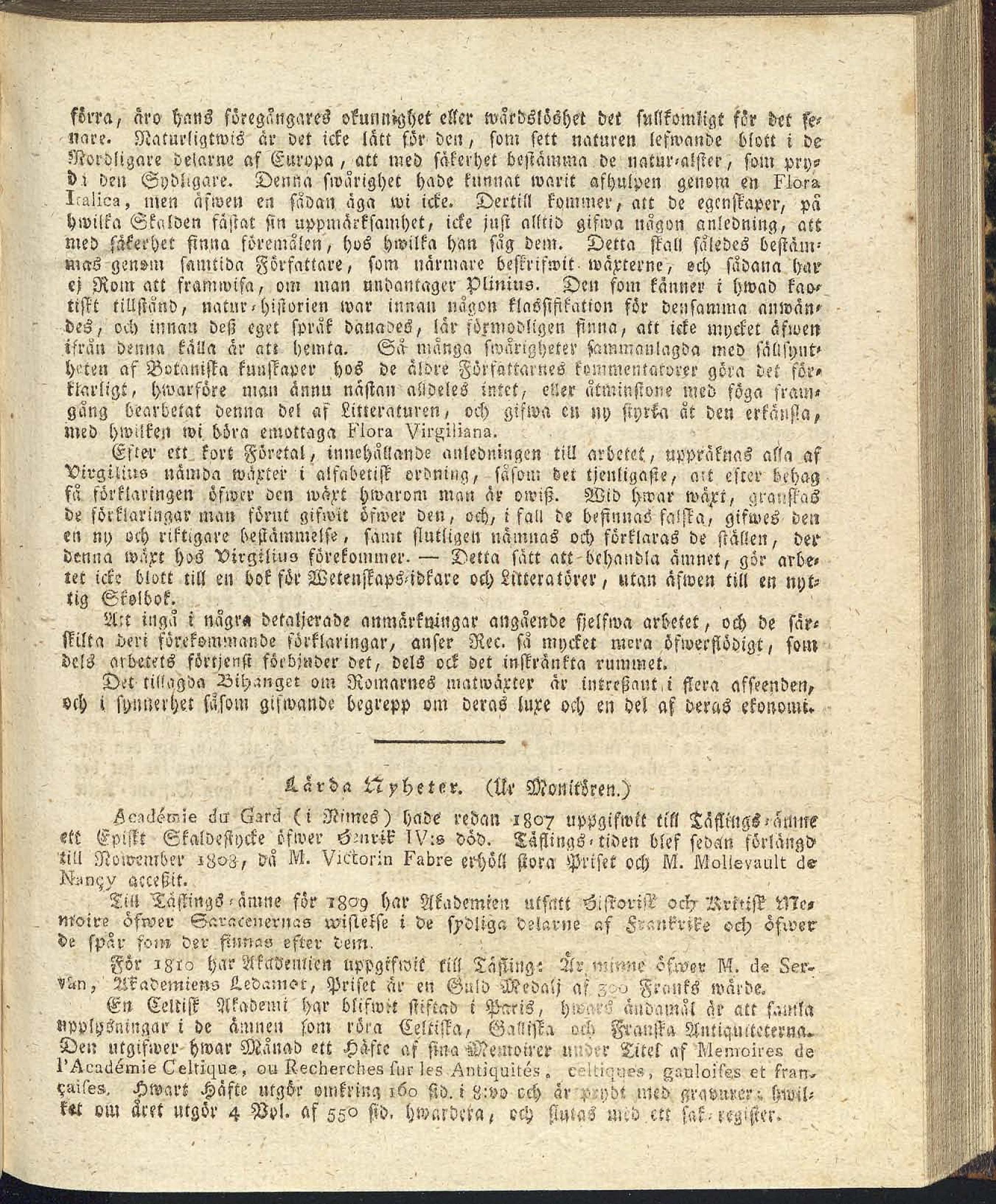 Full resolution (JPEG) - On this page / på denna sida - N:o 20. Onsdagen den 30 Augusti 1809 - Recension. Natur-Historie - Lärda Nyheter