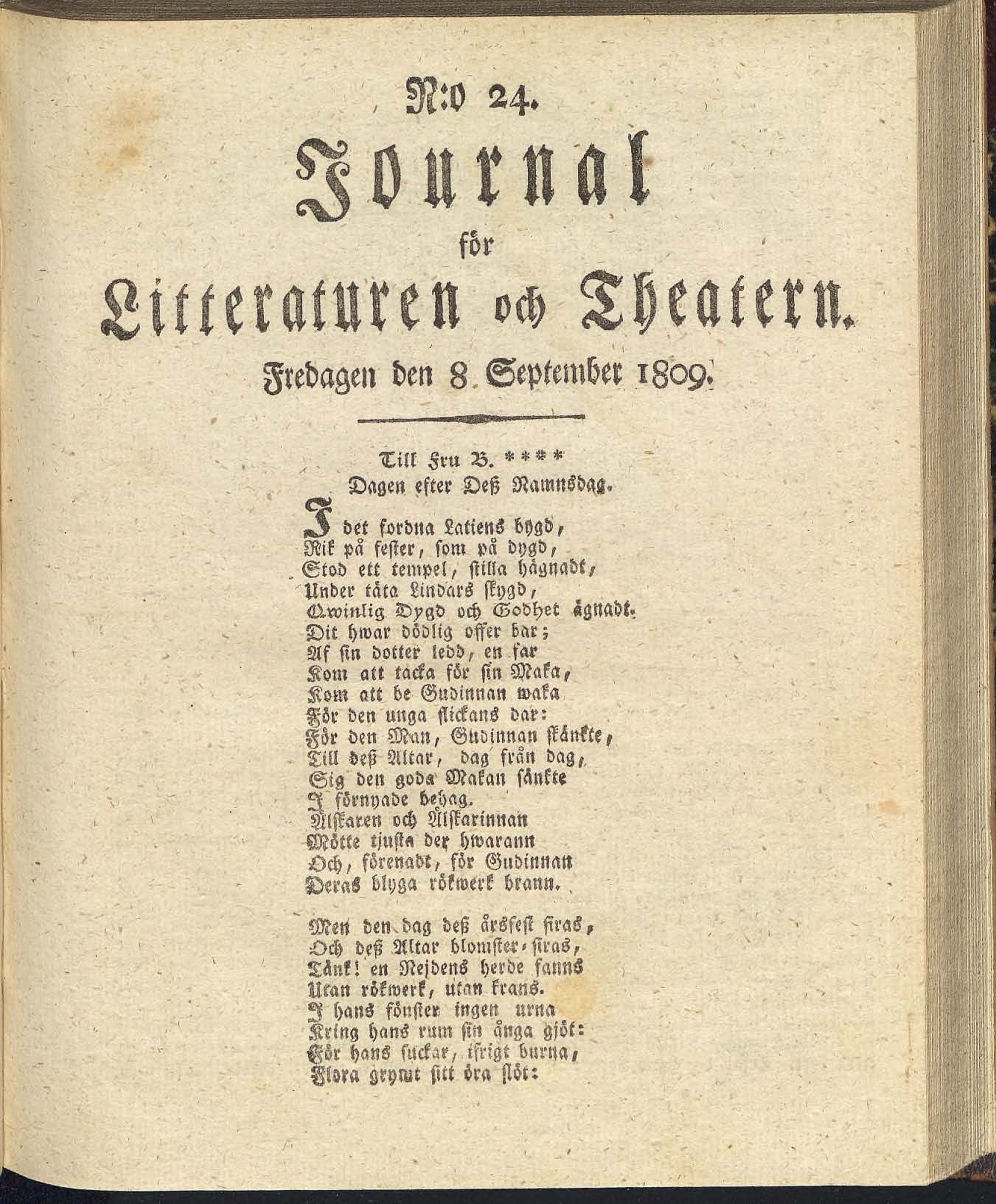 Full resolution (JPEG) - On this page / på denna sida - N:o 24. Fredagen den 8 September 1809 - Till fru B. ****