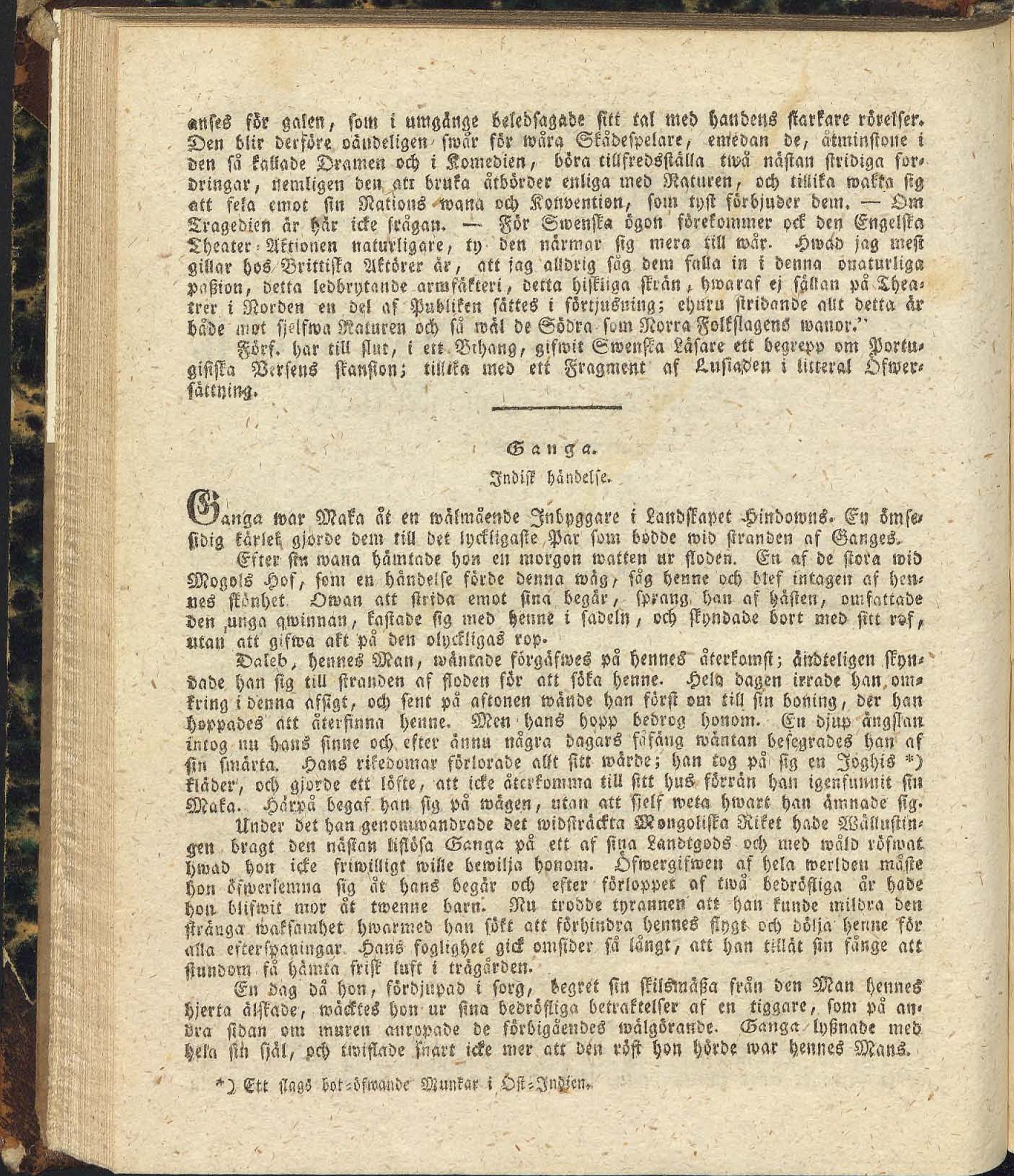Full resolution (JPEG) - On this page / på denna sida - N:o 28. Måndagen den 18 September 1809 - Recension. Geografi - Ganga. Indisk händelse