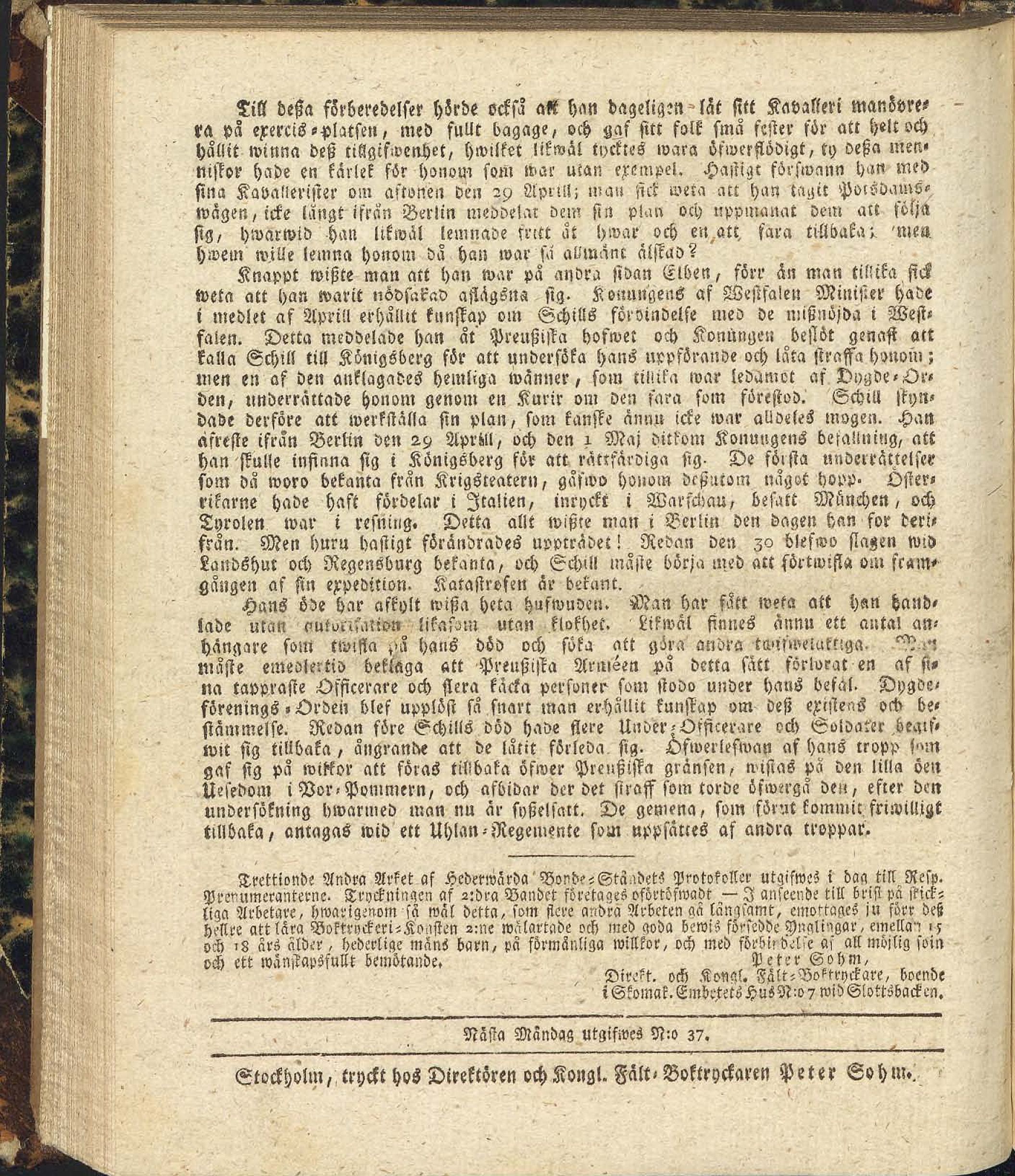 Full resolution (JPEG) - On this page / på denna sida - N:o 36. Fredagen den 6 Oktober 1809 - Upplysningar angående Schill - Trettionde Andra Arket