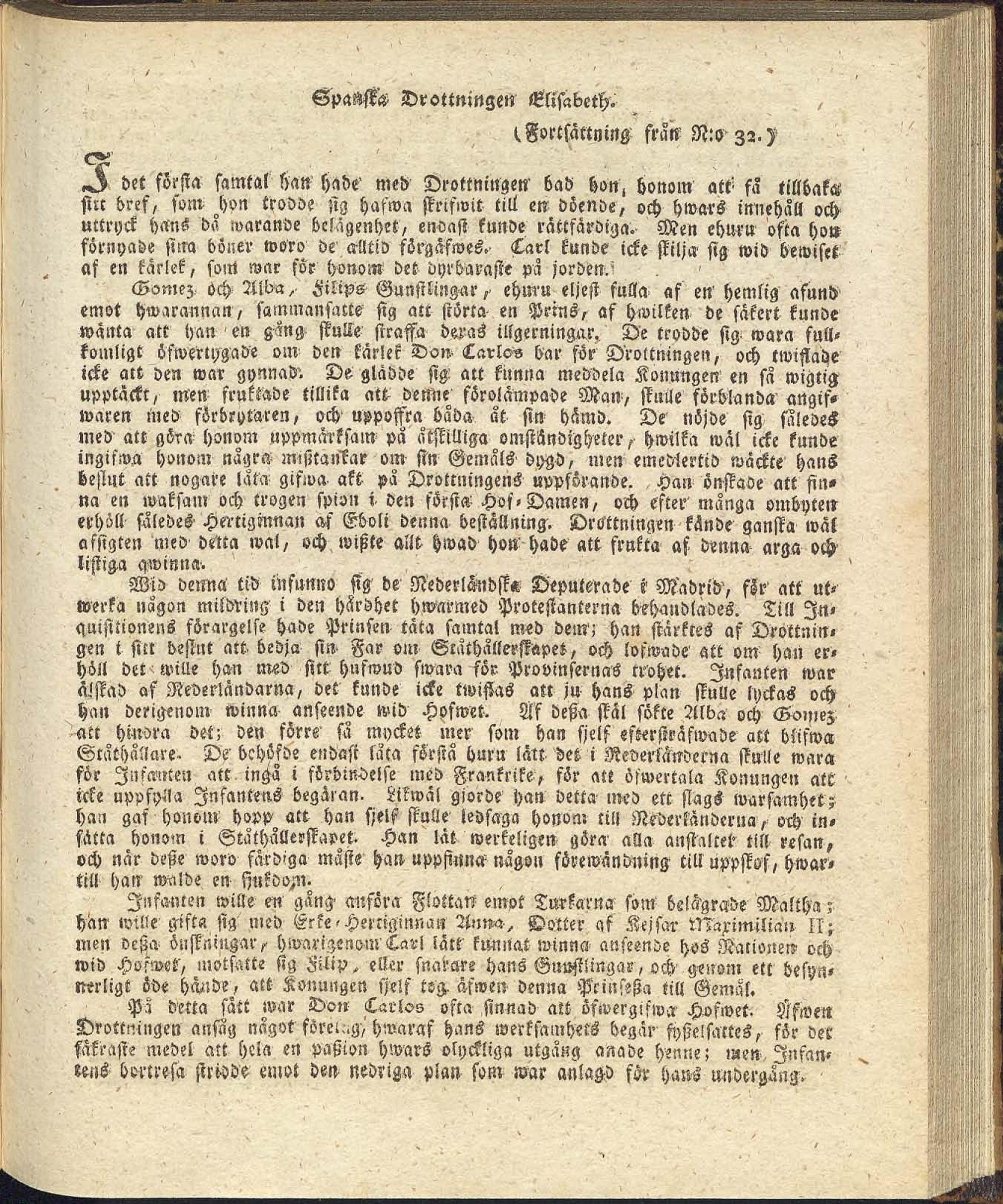 Full resolution (JPEG) - On this page / på denna sida - N:o 37. Måndagen den 9 Oktober 1809 - Spanska Drottningen Elisabeth. Fortsättning
