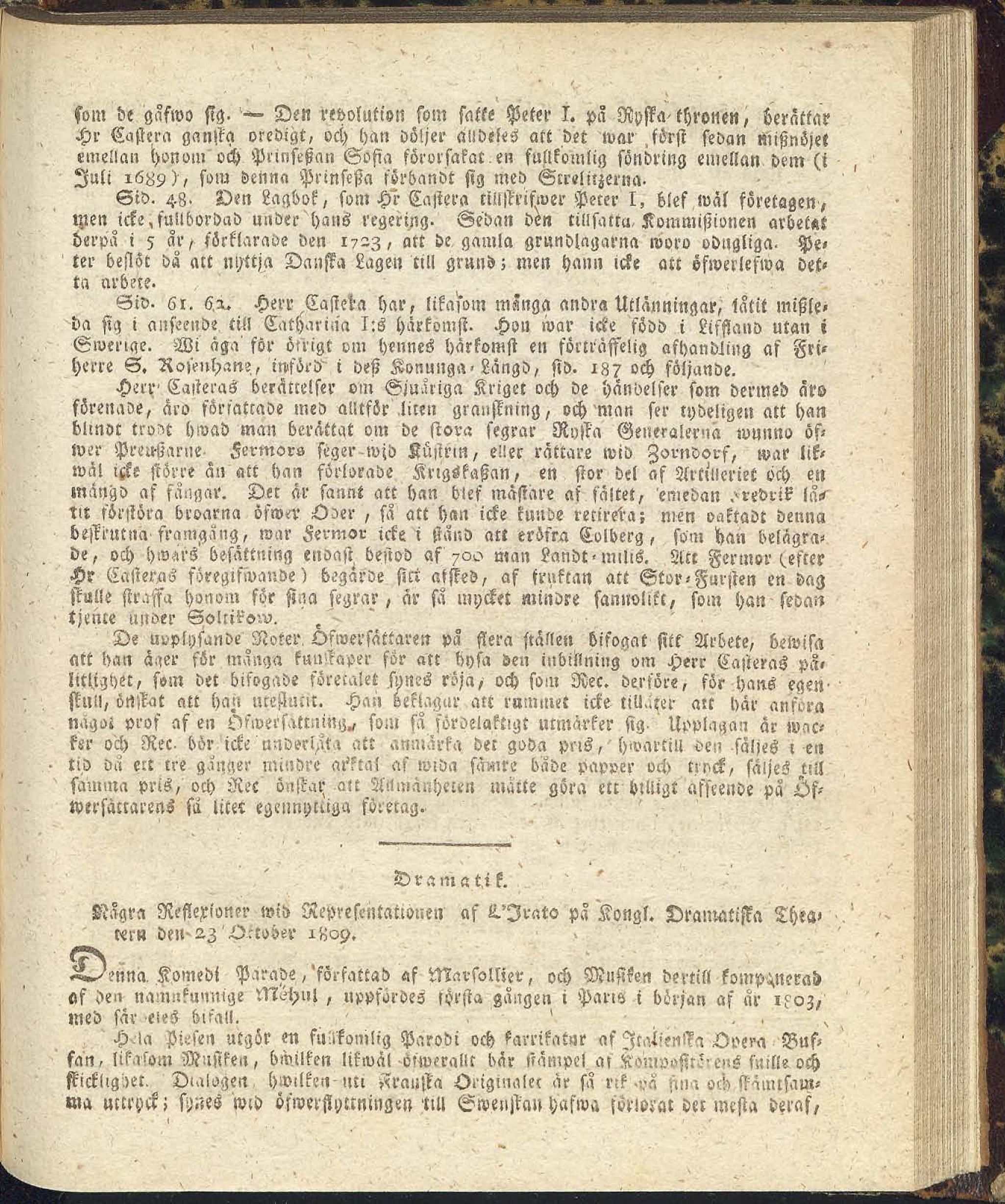 Full resolution (JPEG) - On this page / på denna sida - N:o 45. Fredagen den 27 Oktober 1809 - Recension. Historie - Dramatik