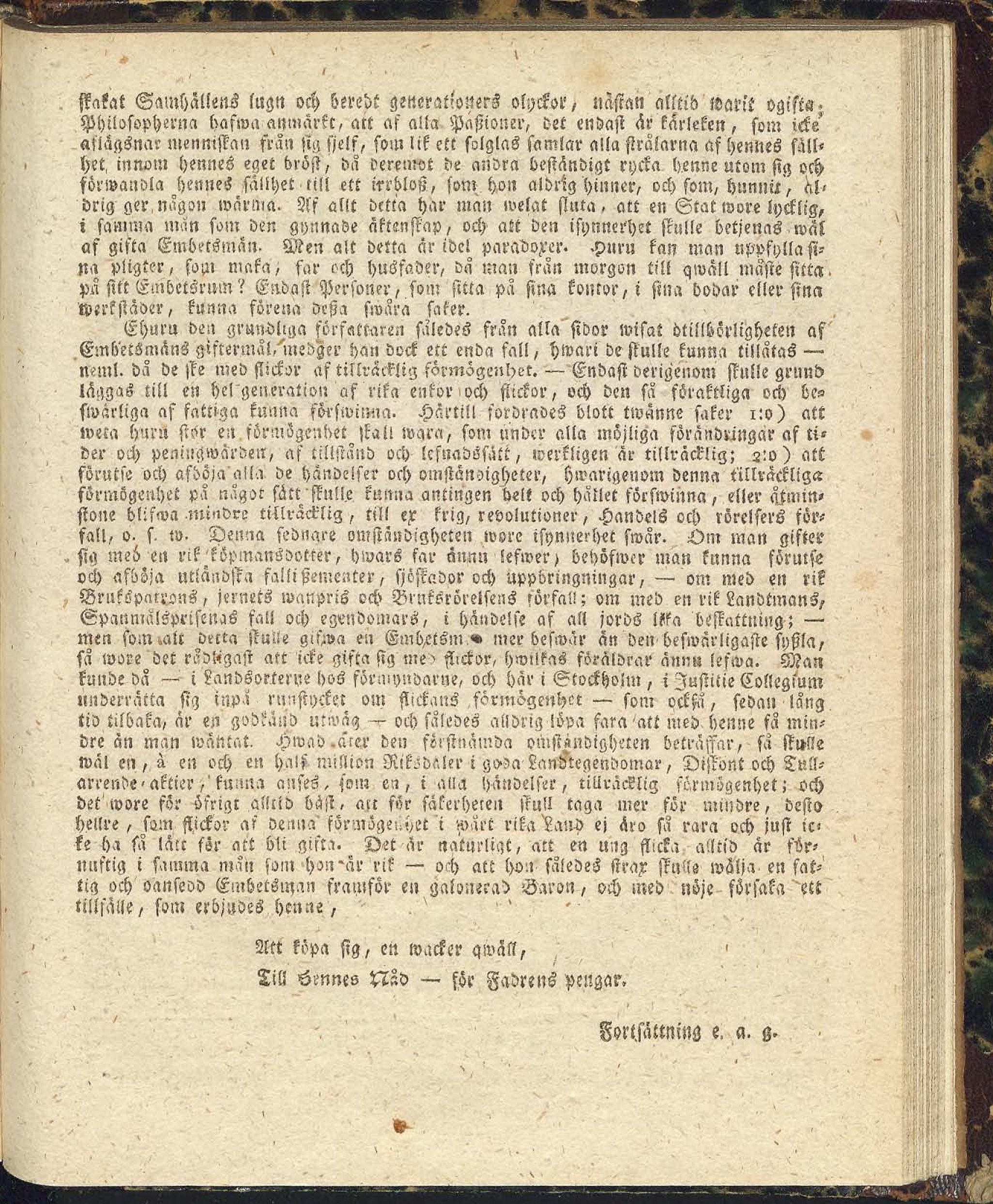 Full resolution (JPEG) - On this page / på denna sida - N:o 56. Lördagen den 18 November 1809 - Några ord om Embetsmäns giftermål