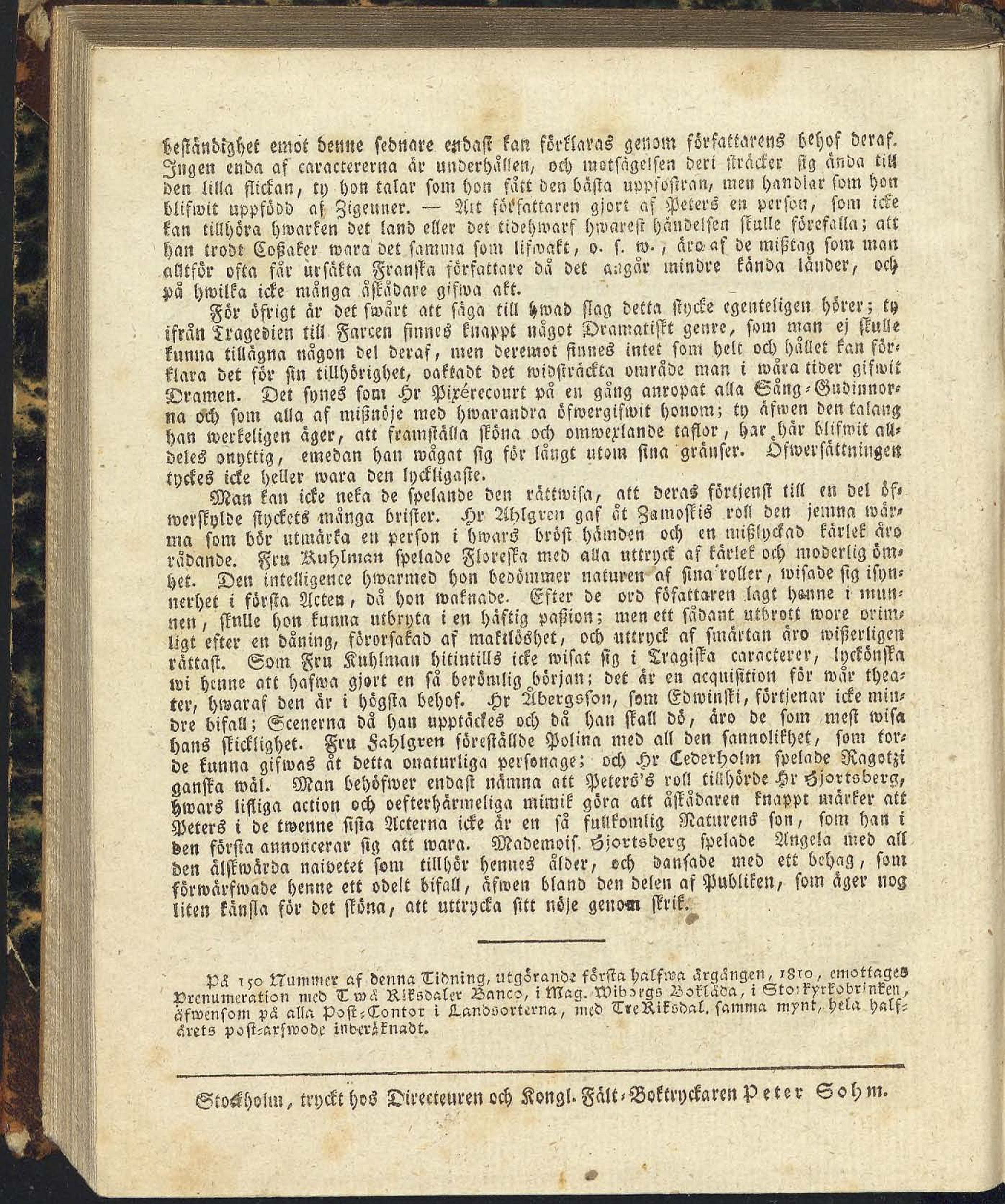 ganska wäl. Man behöfwer endast nämna att Peters’s roll tillhörde Hr Hjortsberg,