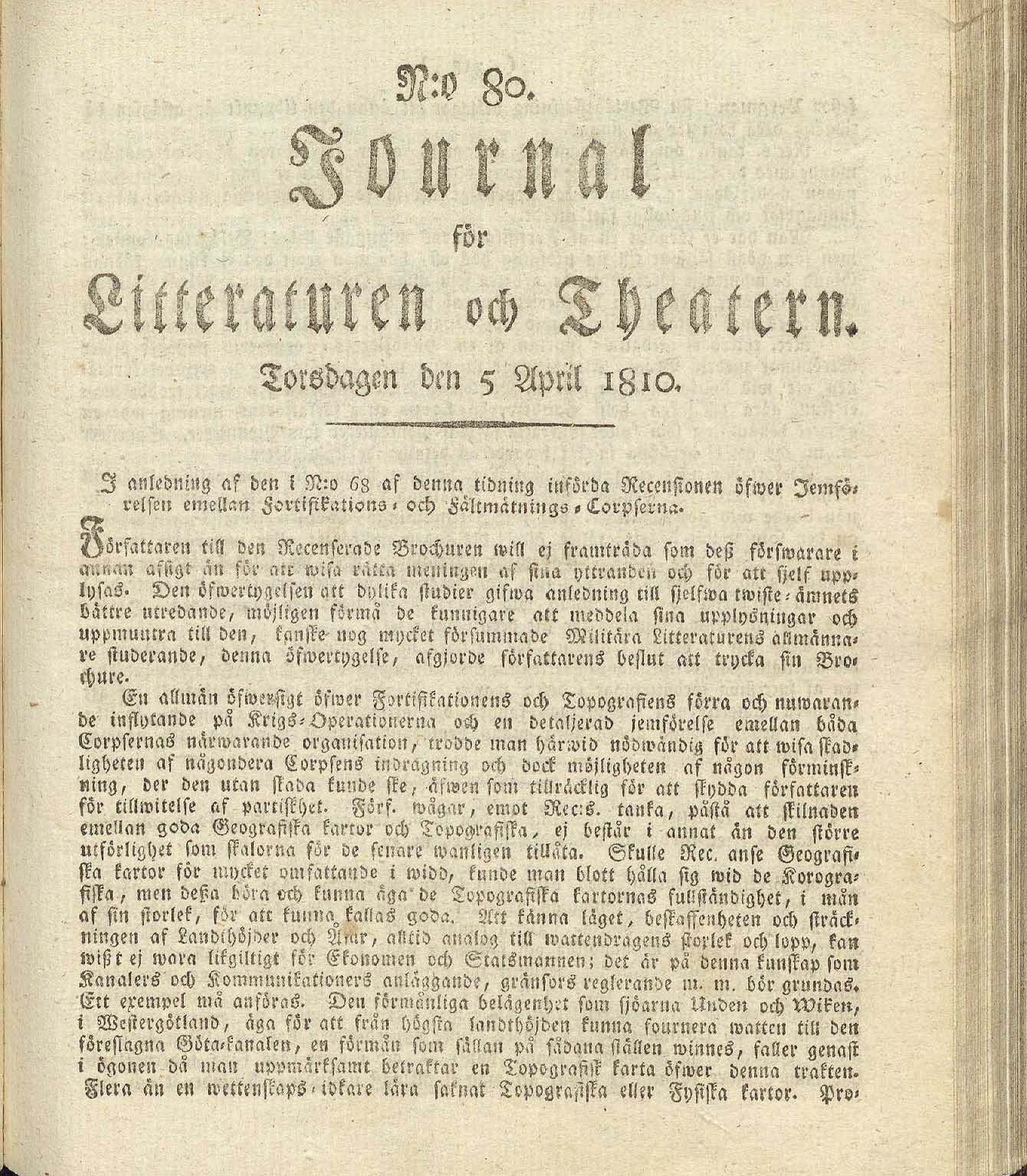 Full resolution (JPEG) - On this page / på denna sida - N:o 80. Torsdagen den 5 April 1810 - Sidor ...