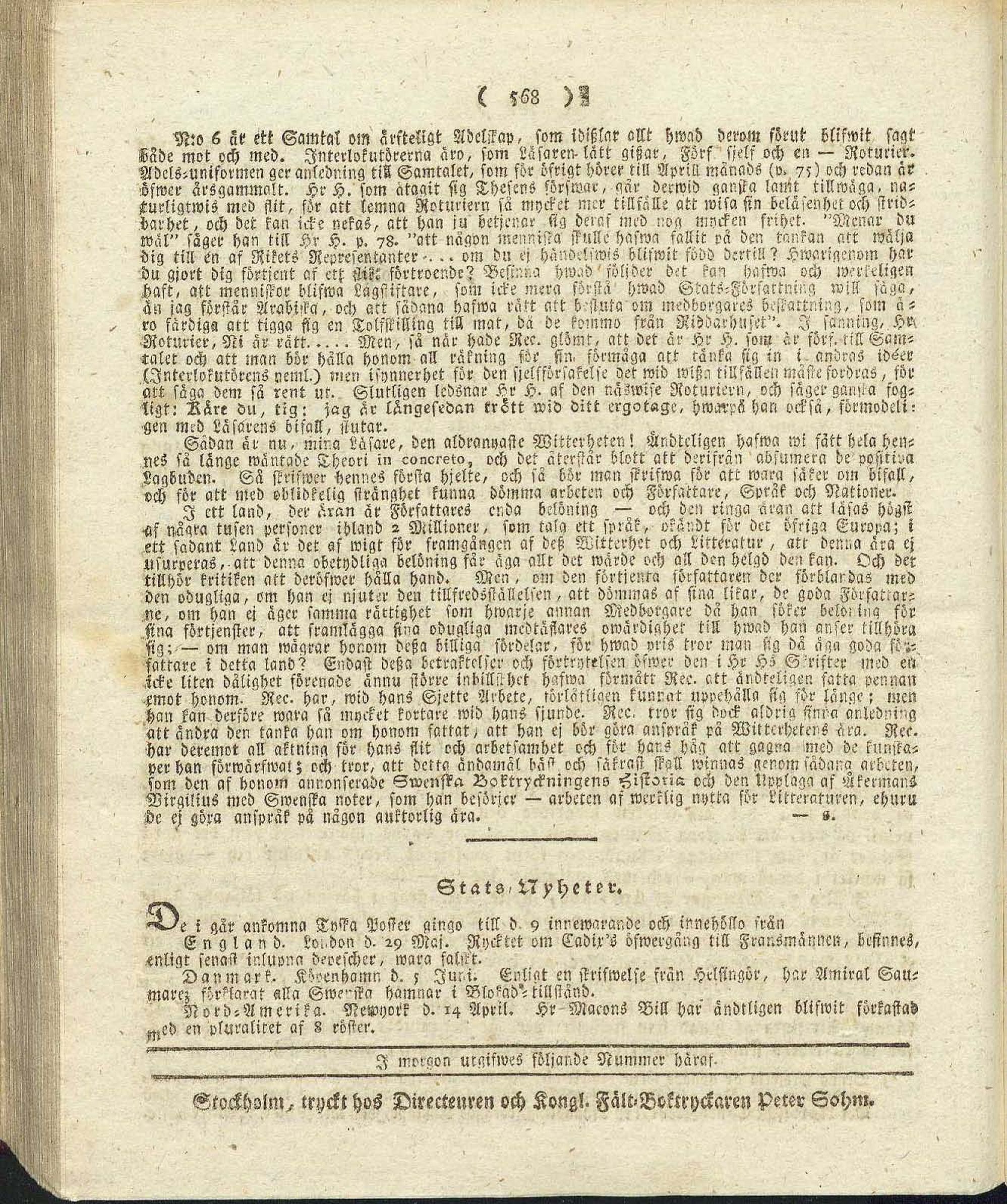 Full resolution (JPEG) - On this page / på denna sida - N:o 142. Torsdagen den 21 Juni 1810 - Sidor ...