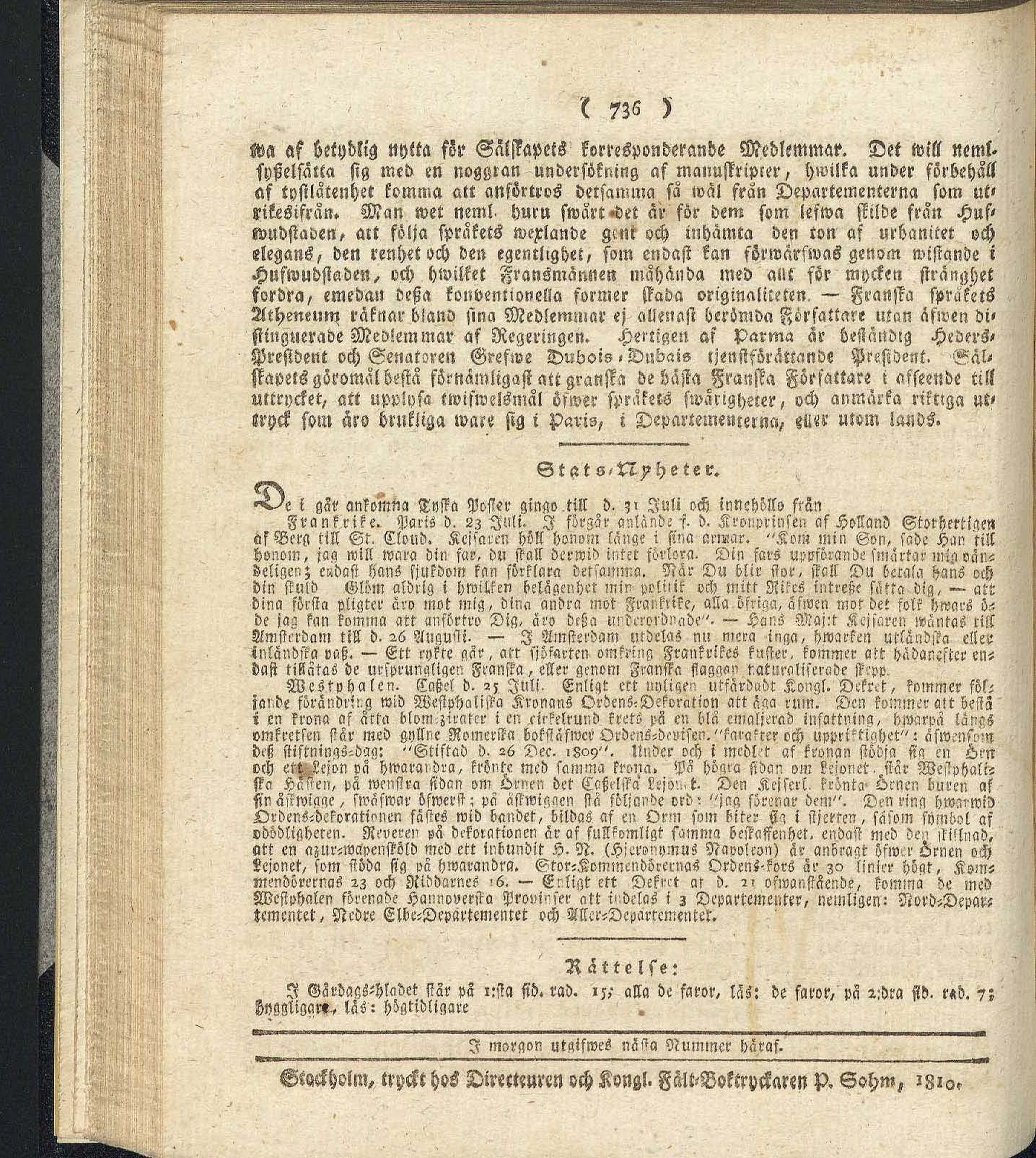 SMS-kaolin- tryckt hos Direttenren och Kongl- FasltiBoktrdokaren P. Sohn» tstos