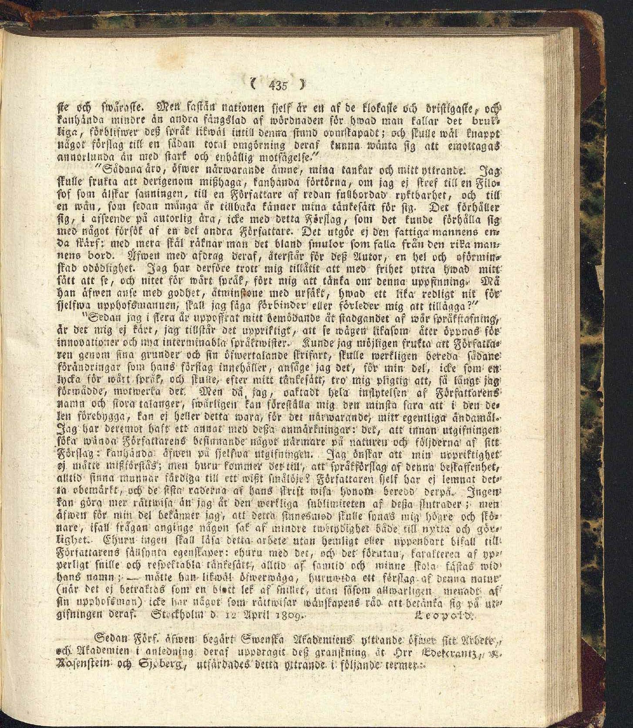 gifningen deraf? Sthckhokm d 12 APM 1809..« Leo-TP ost-s.-