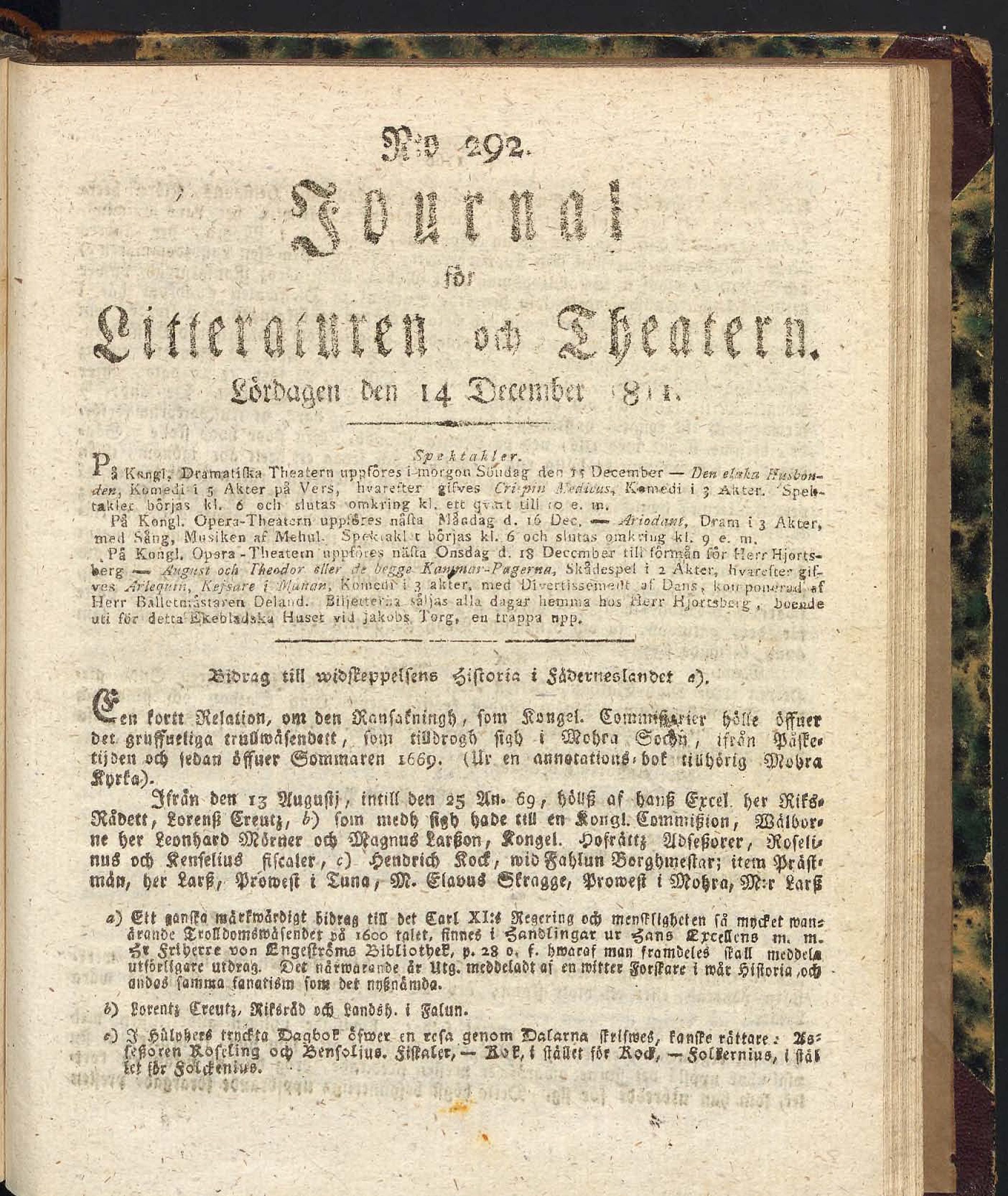 YPä KmägL Oper —Theacem Uppf:«ices näckar Onsdag d. 18 Deccsmber tili förmän För Herr Hjorts-