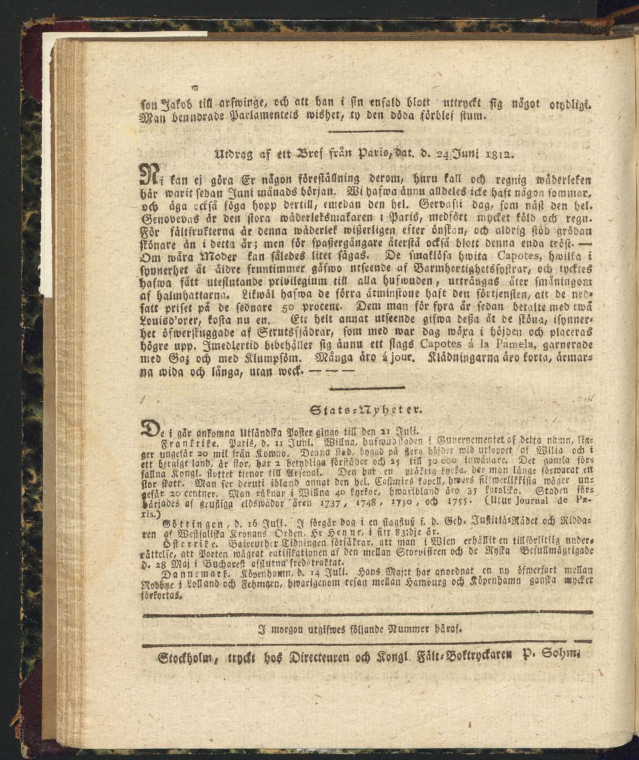 Utdrag af ett Ber fan Par««is,?«äat. d. 24«I"uni x·812.
